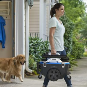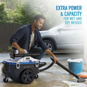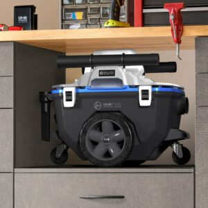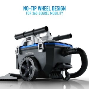 The HOOVER ONEPWR Cordless High Capacity Wet/Dry Shop Vacuum combines extra powerful suction (up to 65CFM) with a convenient, easy to use, durable design. Regardless if you’re indoors, cleaning the garage, or outdoors, its XL capacity, No-Tip Wheel Design, and full set of multi-purpose tools allows you to clean larger messes while easily maneuvering around obstacles. With extra power and capacity you can tackle any wet or dry mess with confidence, while the easy-empty tank keeps clean ups mess-free.