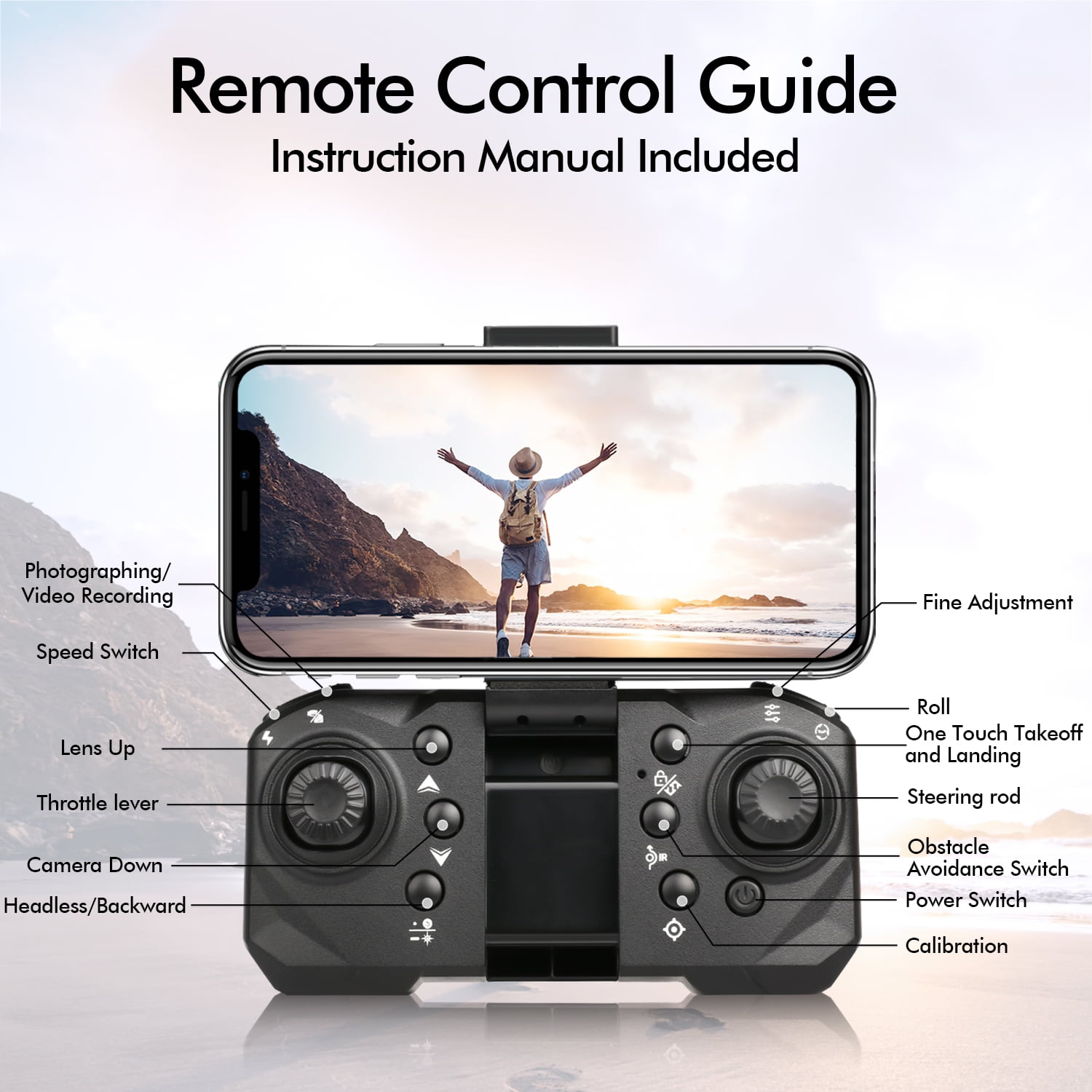 1)Strong Brushless power: Brushless power Level 7 strong wind resistance, High explosive power, high speed power output of 3200 rpm, strong wind resistance, more stable flight. 2)1080p adjustable dual Camera: Electric condenser HD dual camera switching shooting, Support 90 °remote control angle.The UAV image system adopts a front and bottom dual lens design, which supports remote free switching of shooting angle. 1080p pixels High definition image imaging effect, highly restored picture, easy to shoot large films. 3)Electronic fence Low power alarm: If the distance is exceeded, the UAV will not be lost. Just move forward and connect the signal to control the UAV again. The remote controller will alarm automatically when the power is low. 4)Optical flow hovering Novice “second to start”: No matter where you are, you can easily and stably fly, and you can keep balance and stability indoors or outdoors, With omnidirectional 360° intelligent detection and obstacle avoidance, Zero base easy to fly. 5)Fold up space and equipment 3 Endurance battery: The folding is done at one go. The fuselage weighs only 145g, Humanized design, easy to install and take larger battery, durable. (1800MAH Battery capacity and 18MIN Duration) 6)HD image transmission App control: You can view real-time images or comprehensively control various flight functions(Trajectory Delineation Intelligent flight, Take photos/videos with your hands) of the UAV through your mobile phone. What’s in the box: Aerocraft×1 Remote control (excluding mobile phone)×1 Spare propeller×4 USB smart charging cable×1 bolt driver×1 Storage bag×1 Operating Instructions×2
