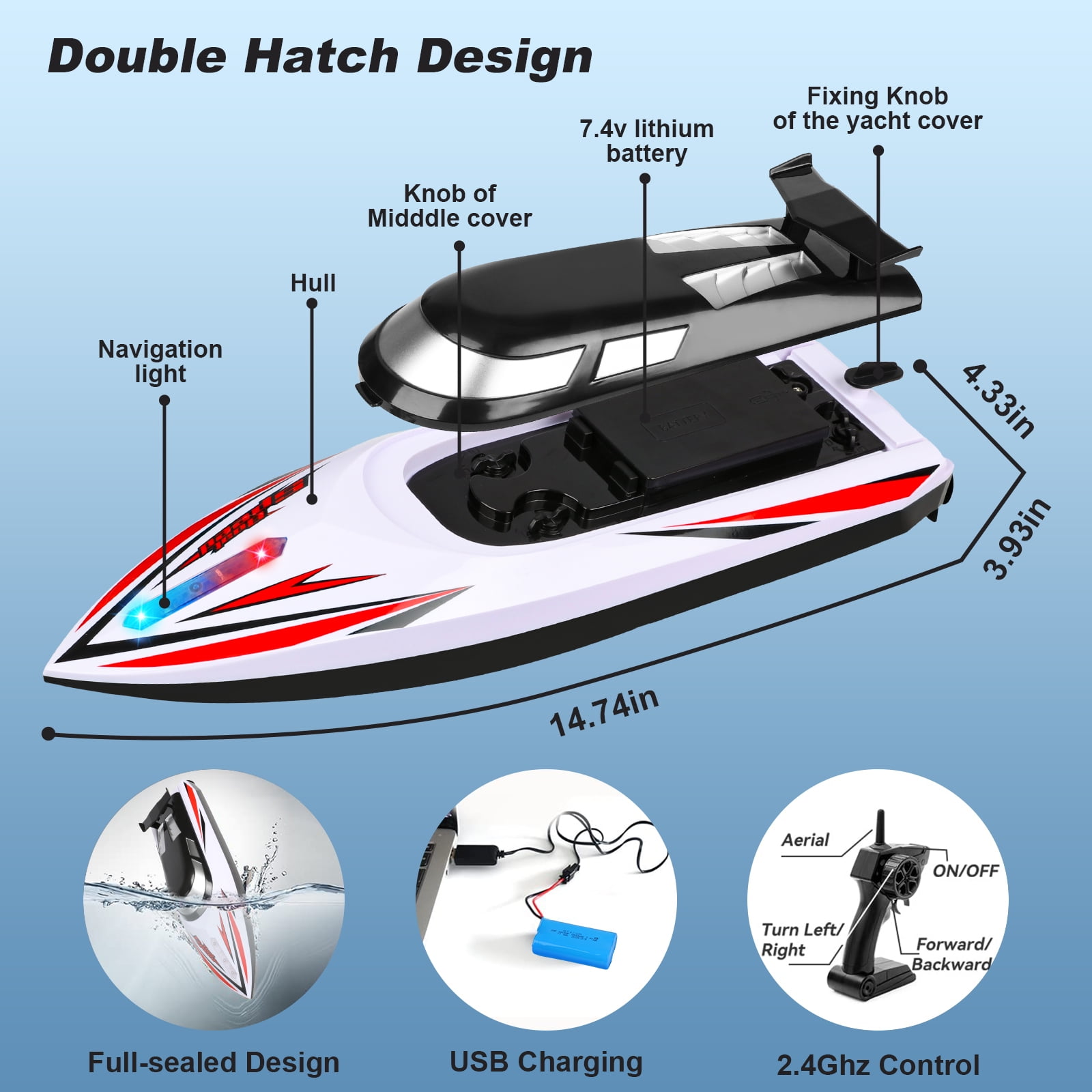 The High Speed RC Boats adopts streamlined shell design and precise structure to ensure high-speed driving, providing a fun and exciting experience for children and adults over 8 years old. Kids can throw themselves into a speed race during summer and holidays. High-quality rowing boats and exquisite packaging are perfect gifts for kids, adults on birthdays, summer days, holidays.