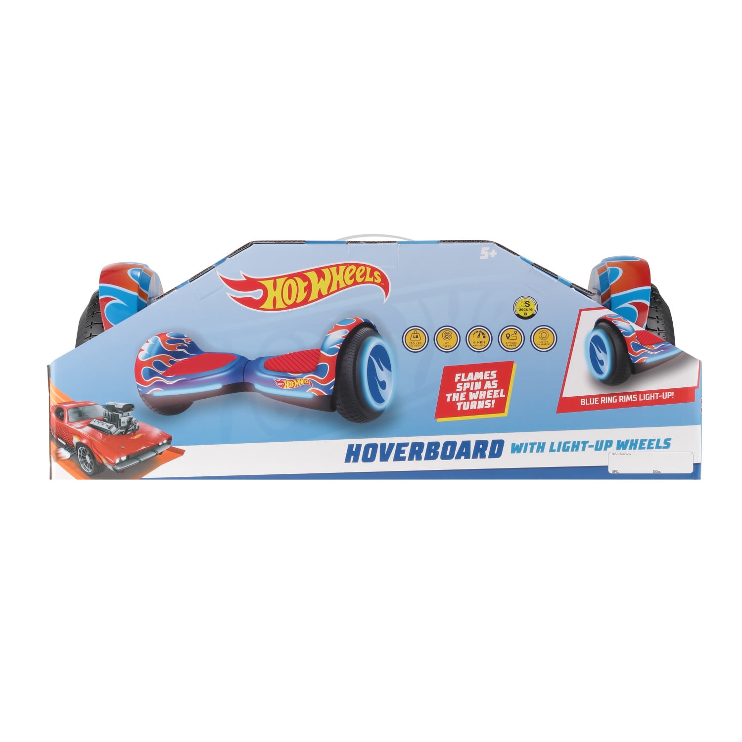When it comes to kids Hoverboards, look no further than the Hot Wheels hoverboard! This hoverboard is a blast to ride and features a shine-through Hot Wheels graphic. The Hot Wheels hoverboard features active balance technology making it a breeze to ride. This balancing technology makes this the perfect hoverboard for both novice and seasoned riders. With its colorful Hot Wheels graphics, a top speed of 6 MPH, and a range of up to 3 miles per charge, this hoverboard is unlike any other hoverboard on the market. This hoverboard has a max weight limit of 130 lbs and is perfect for ages 5+.