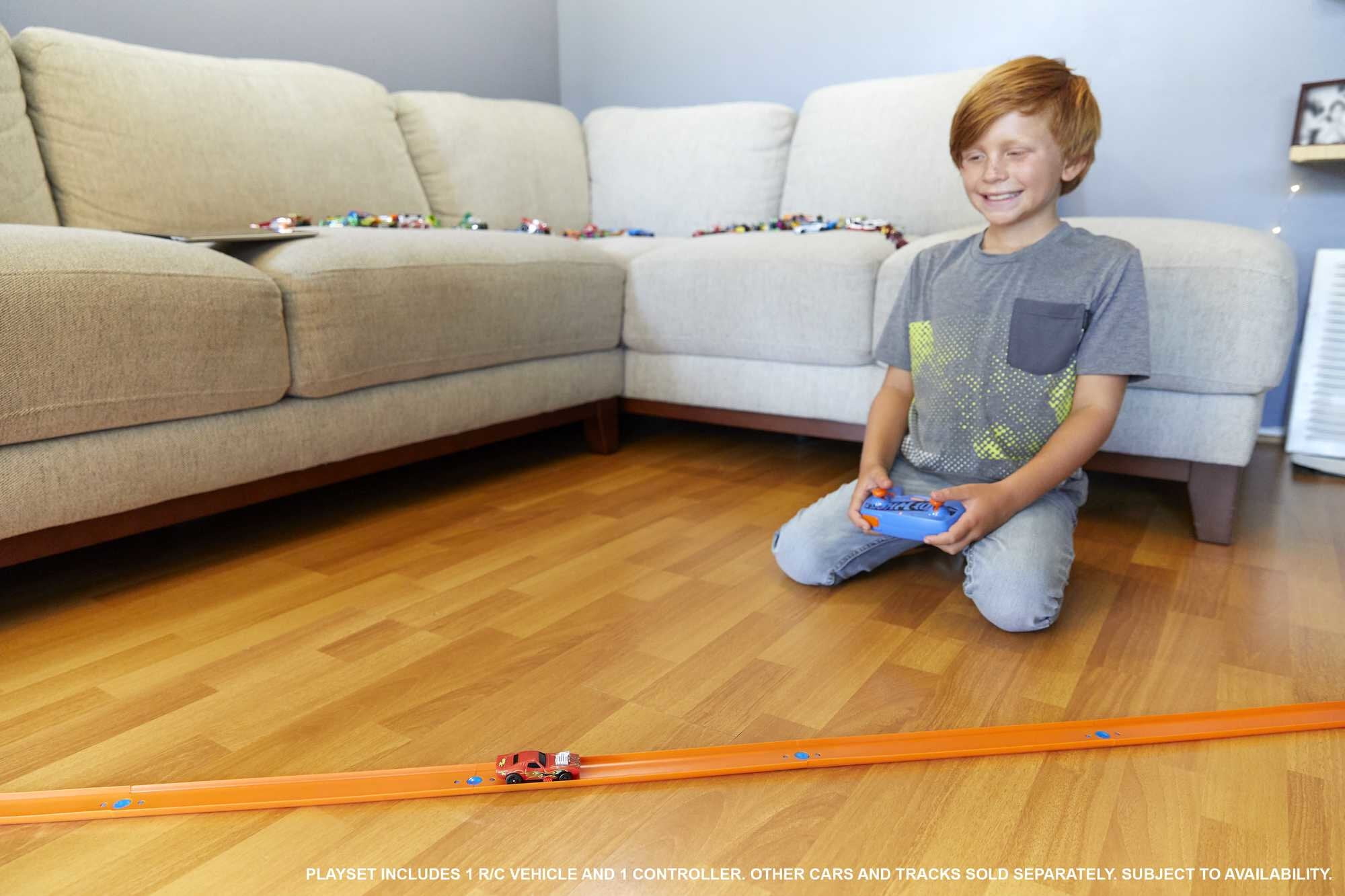 The Hot Wheels R/C 1:64 assortment features iconic Hot Wheels vehicles that puts kids in the driver’s seat by allowing them to control speed and navigation on unlimited adventures. Each car comes with a controller and a track adapter that allows for easy transition from any surface to Hot Wheels track (sold separately). The easy charge port gets cars “refueled” for simple and quick plug-and-play accessibility. Each sold separately, subject to availability. Colors and decorations may vary.