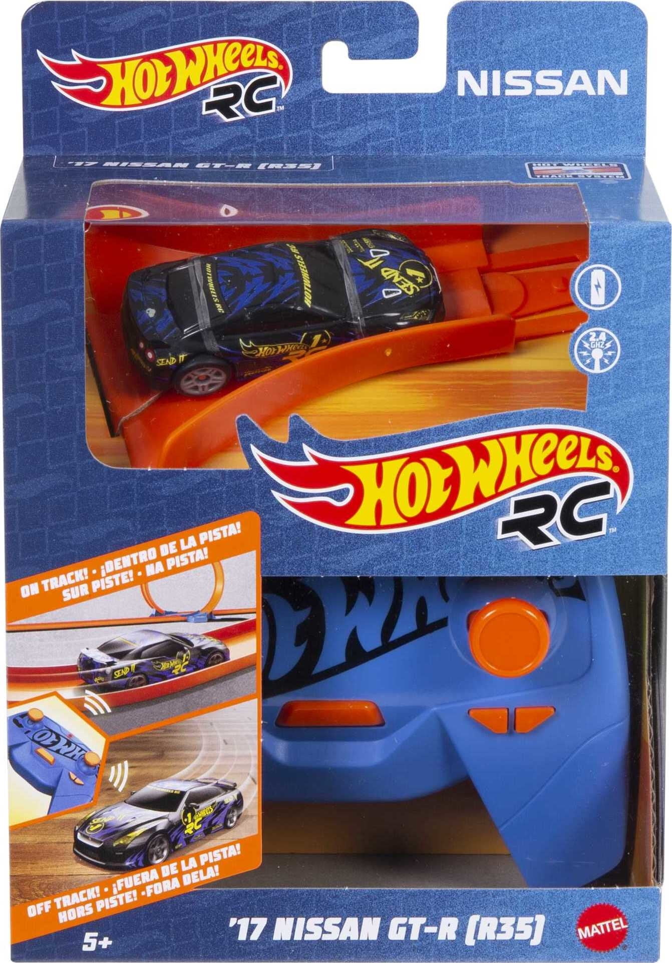 Hot Wheels RC Car, Remote-Control 2017 Nissan GT-R in 1:64 Scale: Age Range: 5 Years and Up The Hot Wheels R/C 1:64 mini cars feature the innovative Hot Wheels R/C technology combined with the iconic decos and stylings inherent to the Hot Wheels brand Kids drive the adventure when they control their cars through epics stunts, thrilling challenges, and down the racing road to victory Cars include a turbo boost for kids who dare to unlock additional power in every challenge and have the ability to reach up to 500 scale miles per hour Hot Wheels R/C 1:64 mini cars can be driven on the table or floor and come with an adapter to easily guide a car onto any iconic Hot Wheels orange track (sold separately) Each car in the assortment makes for an awesome gift for the adventurous kid, 5 years old and older, or any R/C thrill seeker