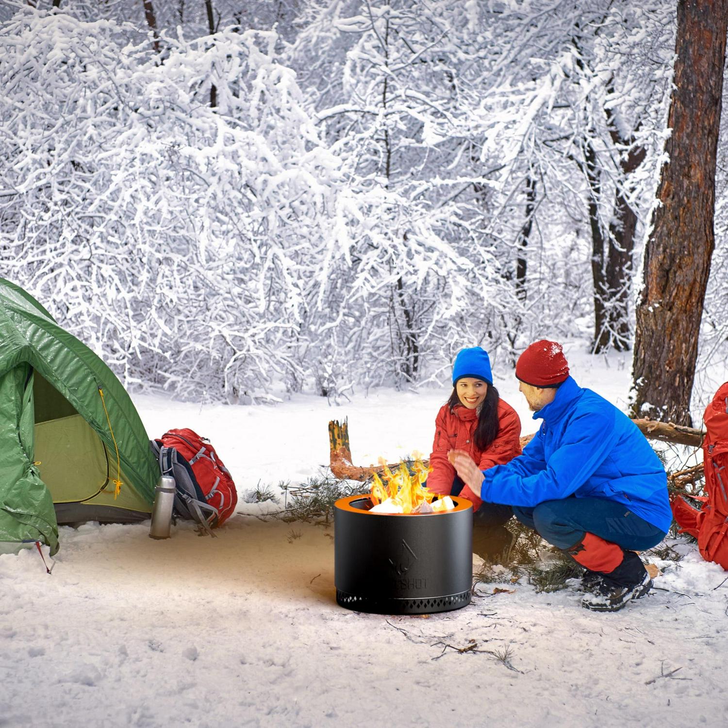 Meet the easy to use, nearly smoke free HotShot Wood Burning Fire Pit, with its black matte powder-coated steel finish. This groundbreaking smokeless fire pit is the new way to enjoy the beauty and warmth of a fire, without all the smoke. The advanced design creates a low smoke wood fire by using intake vents in the stand to allow air inside the double-insulated fire pit walls. The air rises in the walls as it is heated, and is then fed back into the fire bowl, creating a secondary combustion. This new Clean Air Smoke Free Technology removes up to 70% of the smoke when the wood level is kept below the top edge. Now you can enjoy the black matte steel HotShot s super-charged heat with barely any smoke and ash. Take your smoke less, portable fire pit camping, glamping, to the beach, on picnics, to your family’s sporting events anywhere outside with a fire-safe surface. Or appreciate the benefits of the outdoor fire pit from the coziness of your own backyard.