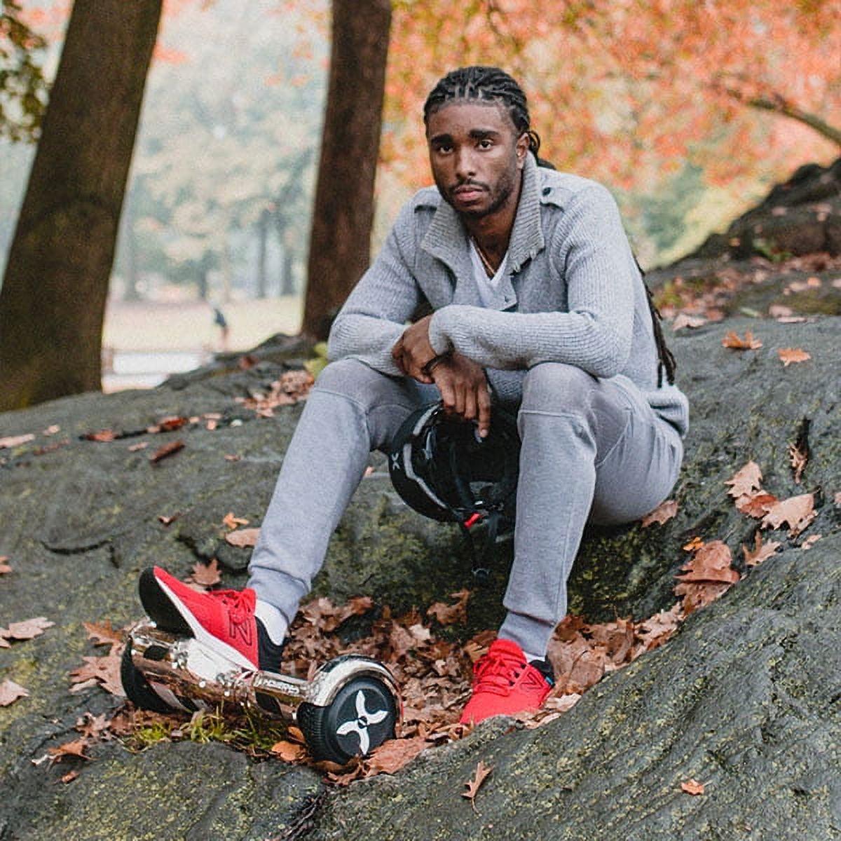 Hover-1 Eclipse hoverboard: a hoverboard that sounds as good as it looks with the Hover-1 eclipse you’re going to be seen and heard. Let’s talk about the heard part first: a built-in Bluetooth speaker pumping out 493w means your favorite songs go where you go. And thanks to the ultrabright LED headlights, people will see you coming, keeping you safe while you’re riding in a style that’s the seen part taken care of. But that’s not all. Download the app, pair it with your smartphone, and access learning modes. Good looks, street smarts, and music.
