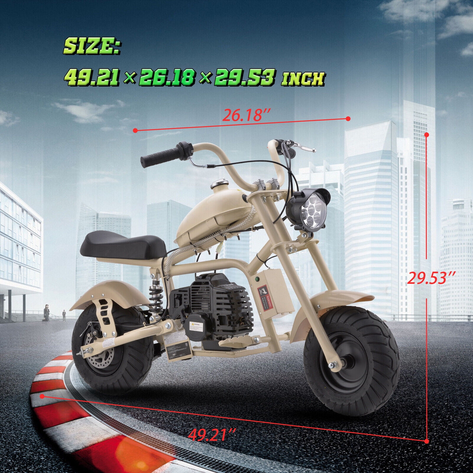 HOVER HEART Gas Mini Chopper Bike, DB003 Model 49.4 CC 2-Stroke Dirt Bike with Rear Shock Absorber, Headlight, Metal Frame, Rear Disc Brakes, Max Load 165Lbs, Up to 20Mph, EPA Approved