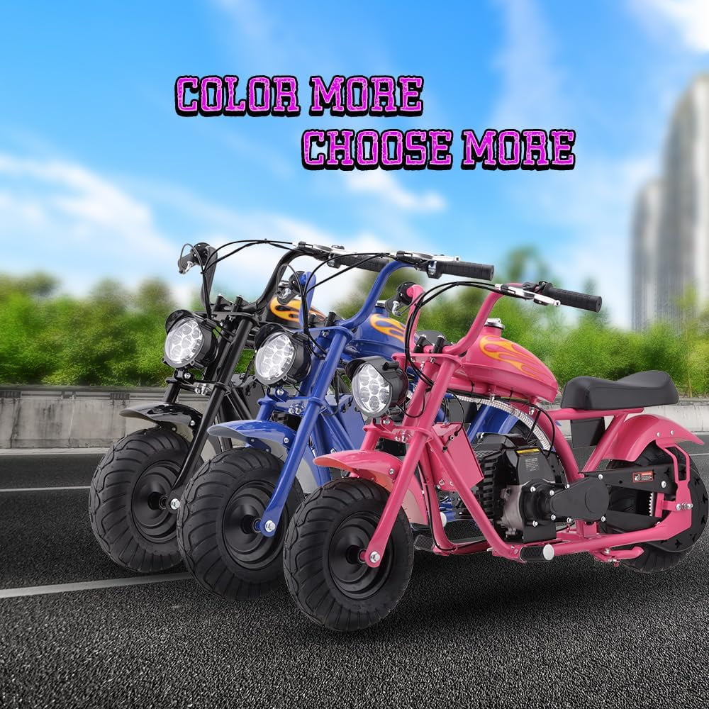 HOVER HEART Gas Mini Chopper Bike, DB004 Model 49.4 CC 2-Stroke Dirt Bike with Big Headlight, Premium Tire, Metal Frame, Disc Brakes, Max Load 165Lbs, Up to 20Mph, EPA Approved