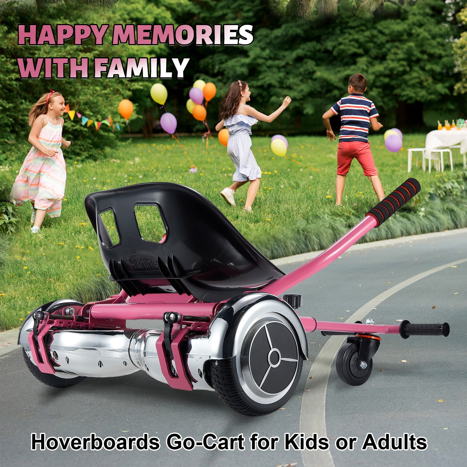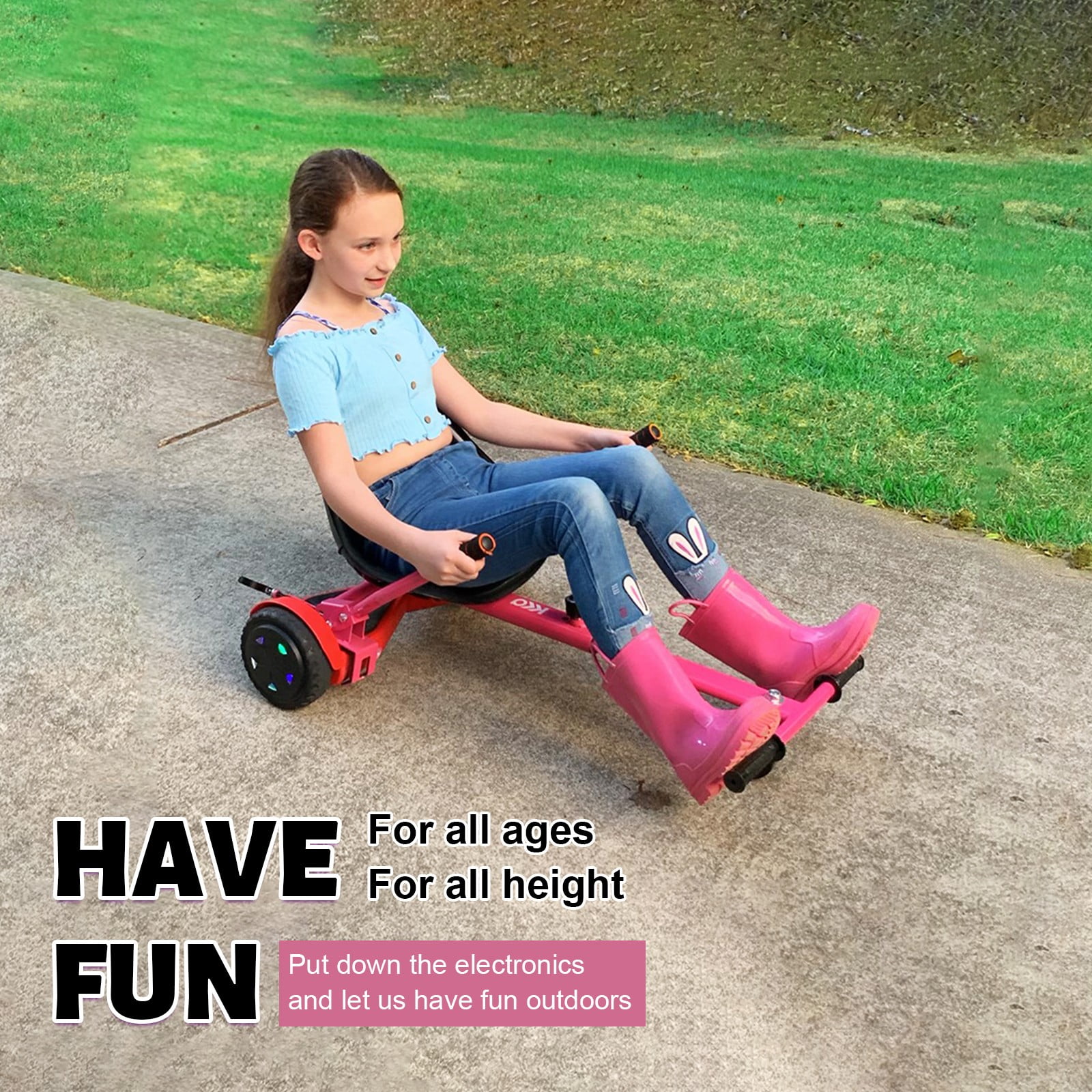 Hoverboard Seat Attachment Go-Kart Fits 6.5”/8”/10” Hoverboards, Hover Cart for Kids , Accessory for Self Balancing Scooter, Pink