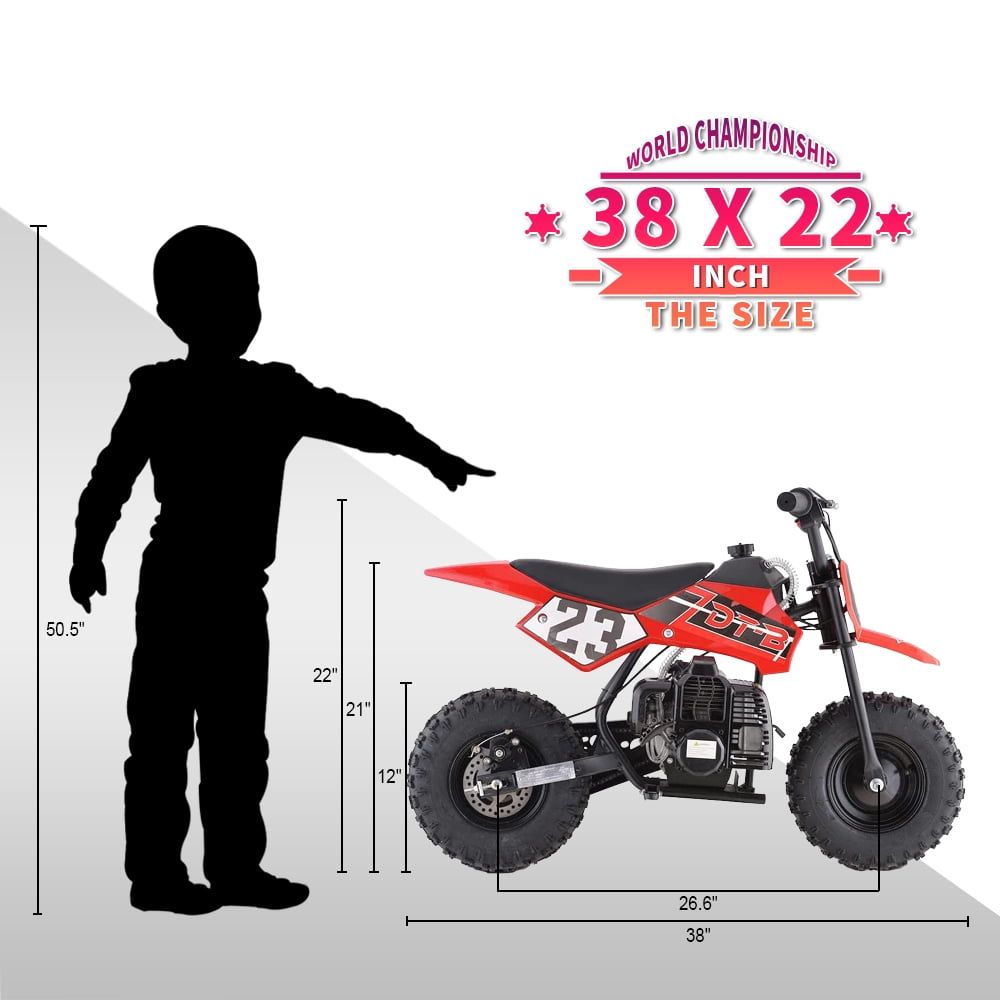 HOVERHEART Mini Kid Dirt Bike, Motorcycle Dimensions 38”L x 22”W x 26”H, 50 CC 2-Stroke Dirt Bike With Off-Road Tire, W/ EPA Approved Gas Powered Engine for Kids over Age 8 (Model: DB02)