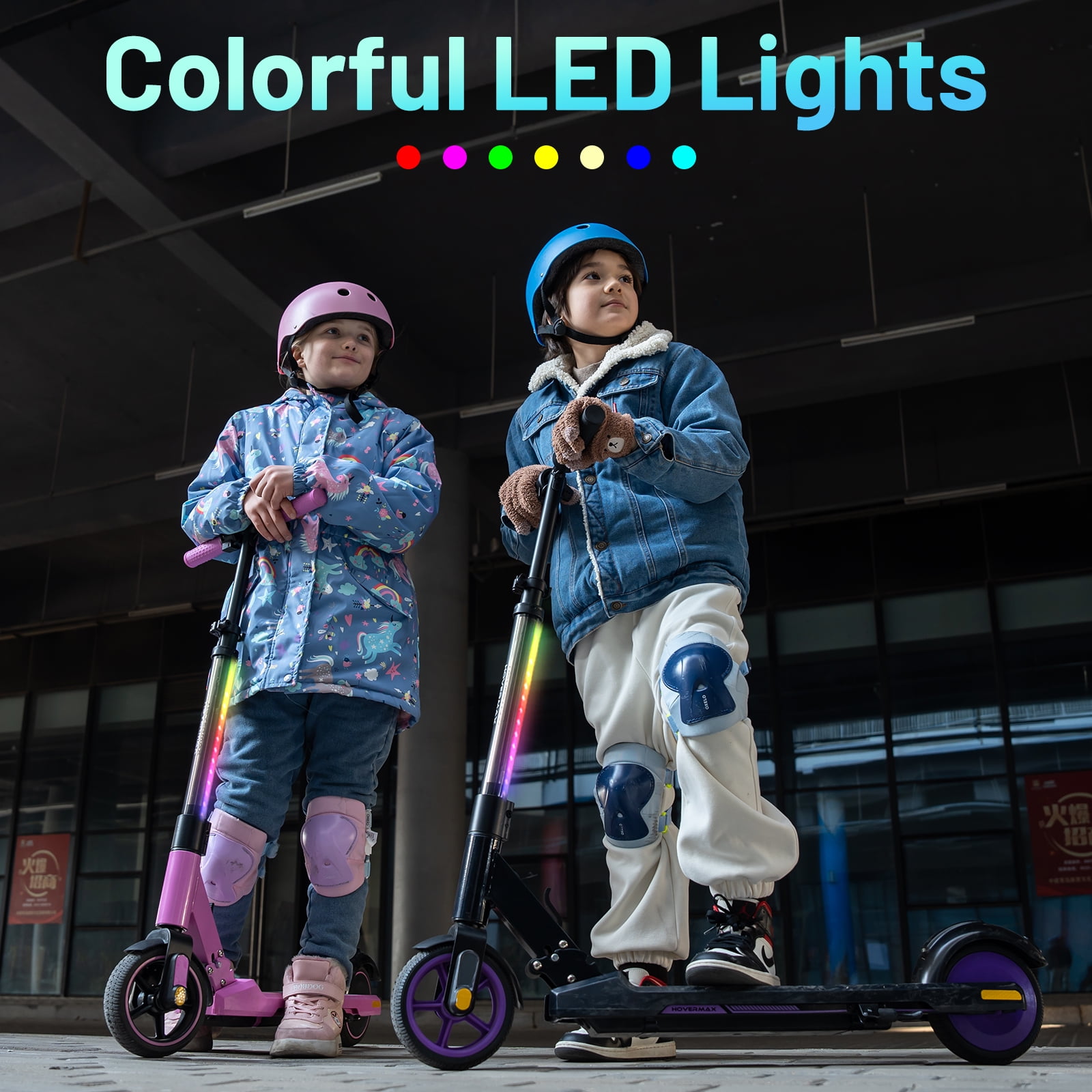 ✨ Features and Functions of the H06C Kids Electric Scooter ✔ Stylish Colorful Light System: The H06C electric scooter is adorned with a dynamic light system that brings a vibrant touch to every ride. Improving visibility for safer rides. ✔ Easy to Fold & Carry: Featuring an advanced one-step folding system, Convenient and Easy to Operate that enables children to fold the scooter independently. It easily fits into the trunk of a car, allowing for hassle-free transportation to the park, trail, or any outdoor playground. ✔ 3 Gear & LED Display: 3 speed modes ranging from 3 MPH to 6 MPH to 9.3 MPH, allowing children to ride at a pace that suits their comfort and skill level. An LED display integrated into the thumb throttle provides real-time information, including current speed, selected speed mode, and battery status, offering a clear riding experience for kids. ✔ Dual Brake System: The HOVERMAX H06C electric scooter for kids is equipped with both an electronic brake and a mechanical brake, providing superior stopping power and control. This dual system enhances safety and reliability, ensuring a smoother and more secure riding experience for your child. ✔ Adjustable Heights: The handlebar height is adjustable, ranging from 29 to 37 inches, accommodating your child’s increasing stature. Grow with your child! ✔ Surprising & Ideal Gift: The H06C electric scooter makes a perfect gift for those special occasions like children’s birthdays, Children’s Day, Christmas, and other celebrations. It’s a delightful surprise that’s as exquisite as it is unique.