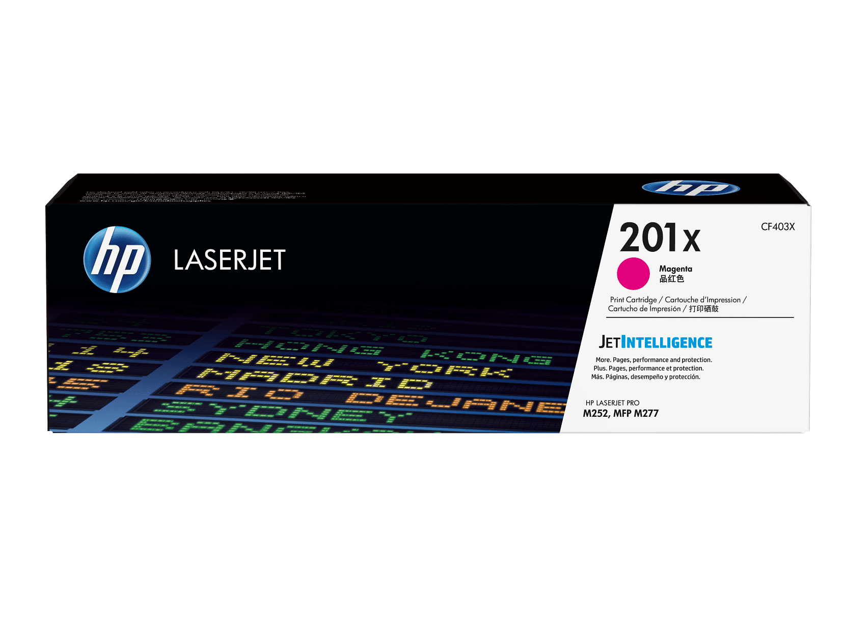 Overview Count on Original HP High Yield Toner cartridges with JetIntelligence for more professional-quality prints, excellent performance at high speeds, and innovative anti-fraud protection—technology unique to HP. Ideal for producing more of the professional-quality color and black-and-white prints you need—at the speeds your printer was built for. Take pride in high-quality prints with Original HP Toner. Original HP Toner cartridges with JetIntelligence are designed to match the Color LaserJet Pro’s high-speed performance and deliver anti-fraud technology and legendary HP quality and reliability. The choice you can trust to help avoid reprints and wasted supplies. Choose Original HP Supplies, designed for reliability and consistency. Benefits Save up to 25% with a high capacity toner vs standard Best value ~2,300 pages Features More pages—and more value—than ever Get more from your investment with page maximizer technology that enables more pages per cartridge than previous versions of HP toner cartridges. Print at high speeds—without sacrificing quality Continue to count on consistent, professional quality at high speeds with HP ColorSphere 3 toner. Help protect against fraud Help ensure you’re getting the authentic HP quality you paid for with innovative, anti-fraud technology. Help protect your investment Continue to count on professional quality at high speeds—print after print—with HP ColorSphere 3 toner. Disclaimers HP 201X high-yield cartridges are not included in printer purchase; purchase separately. For more information, see . Based on cartridge yields for HP 131A compared with HP 201X Original HP Toner Cartridges. For more information, see . As compared with cartridge gauges for predecessor products. Approximate average composite cyan, yellow, magenta yield based on ISO/IEC 19798. Actual yield varies considerably based on content of printed pages and other factors. For details see . Based on cartridge yields for HP 201A compared with HP 201X Original HP toner cartridges. For more information, see .