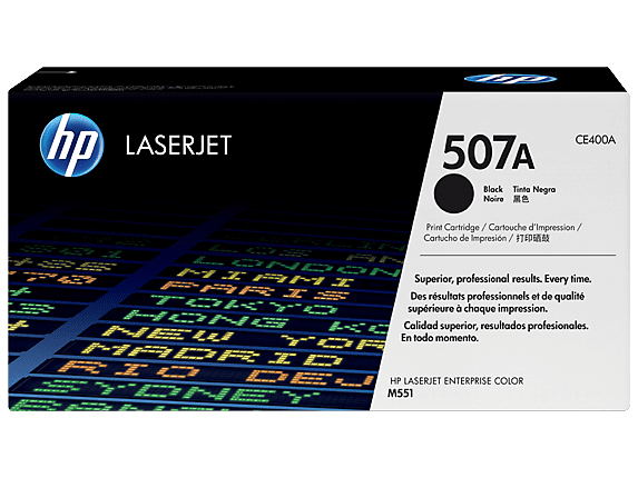 The HP 507A (Ce400A) Black Original Toner Cartridge is essential for a variety of black-and-white and color print jobs, such as memos, emails, official documents and more. It delivers documents with crisp text and sharp images for clear and legible reading. With a yield of up to 5,500 pages, it meets the printing demands of a busy workplace. This LaserJet toner cartridge is compatible with the HP LaserJet Enterprise Color M551 printer.