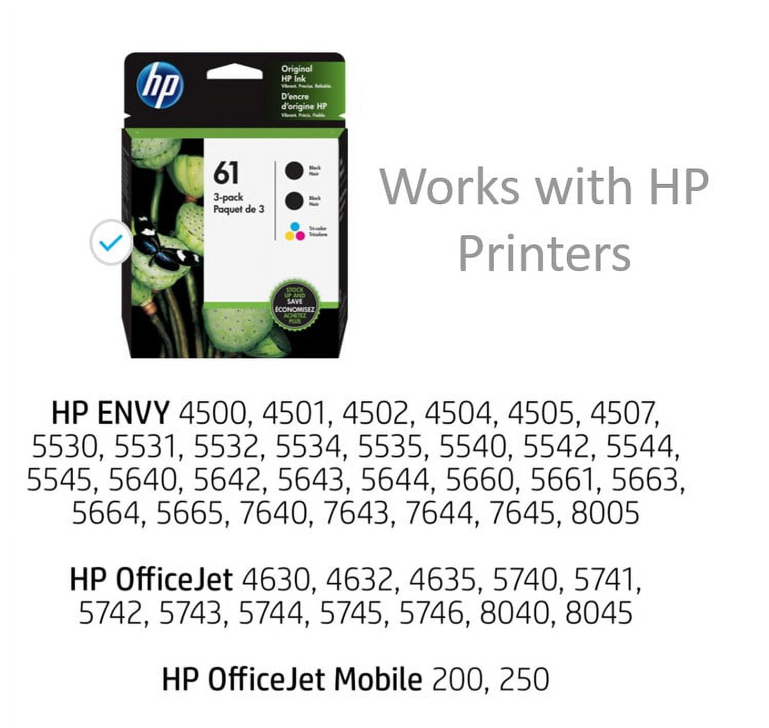 HP 61 1-Clr/2-Blk Original Ink Cartridge 3-Pk