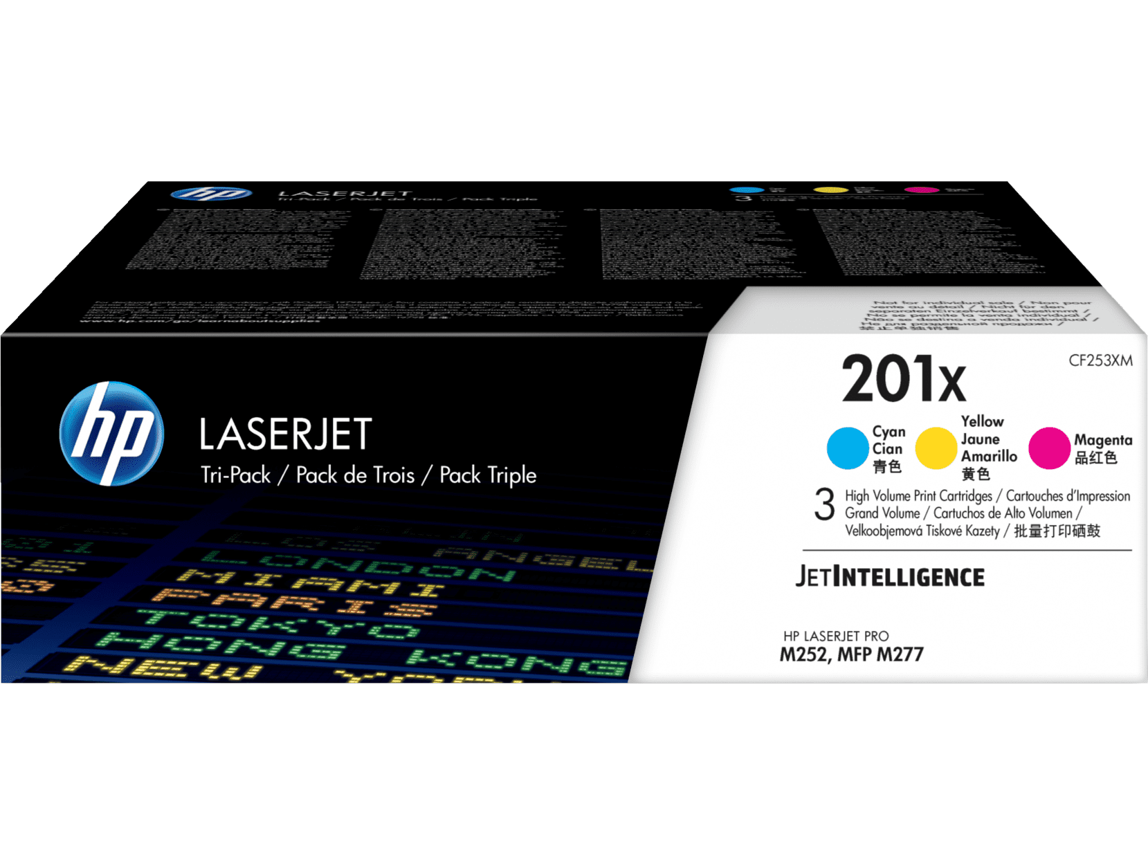 Overview HP LaserJet Pro M252, M277 What’s In The Box: 3 toner cartridges; Recycling guide High Yield Step Up: Up to 2X more pages with high-yield toner**
