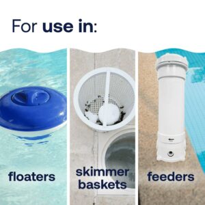 This product is great for all pool types, including salt water systems. Use 1″ tabs for above ground pools, 3″ tabs for inground pools.