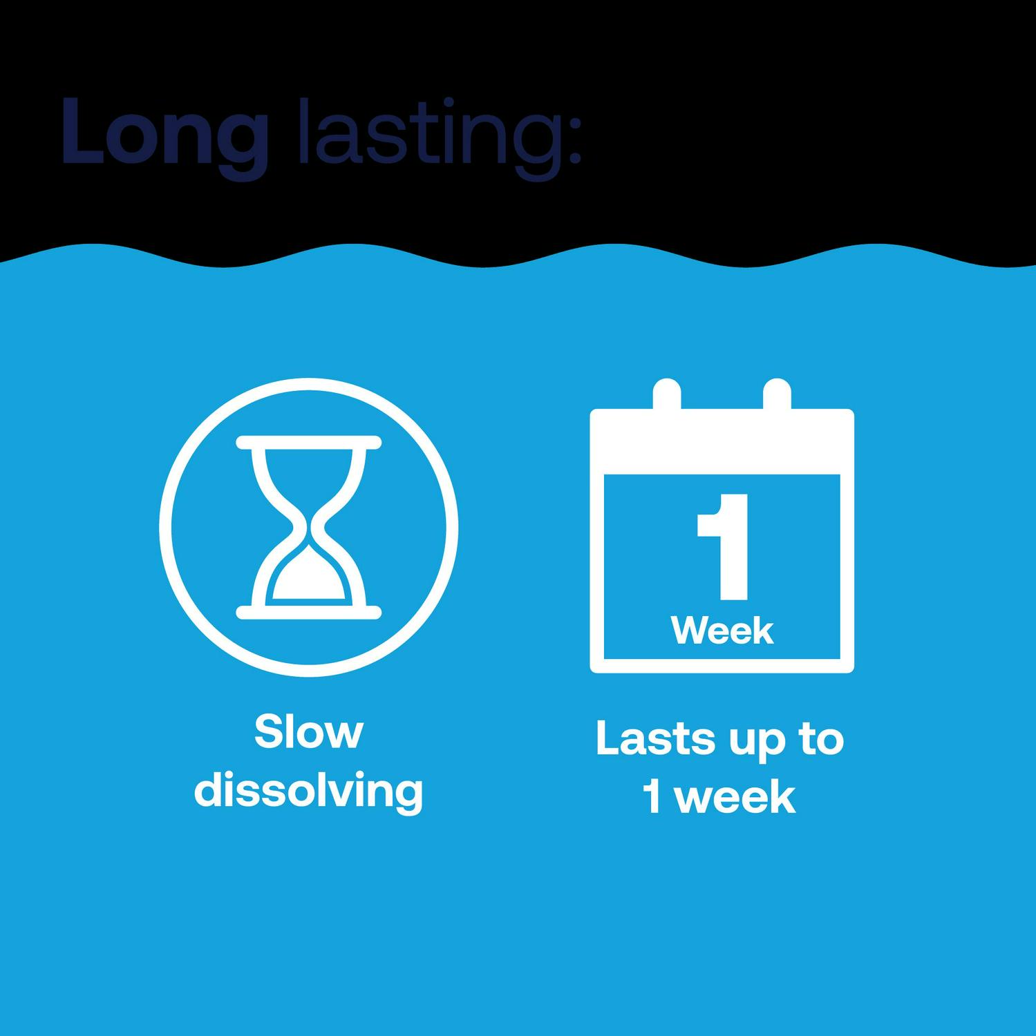 – Tabs last for up to 1 week