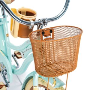 Designed with convenience, style, and comfort, the Huffy 24″ Nel lusso girl s cruiser bike has everything you need and more to get your riding started. The perfect fit frame is an exclusive design that’s ideal for casual and recreational riders. While you’re seated at a stop, both feet can be kept flat-footed on the ground. The raised handlebars let you ride in an upright riding position, which is more natural for your back, arms, and hands. Your legs can extend forward while pedaling, which eliminates wrist, arm, neck, and leg fatigue. In addition, the padded seat on this mint green cruiser bike is designed to be a little farther back and have a lower Centre of gravity. It also comes with additional accessories, including a front basket, a rear rack, and a beverage cup-holder to make your ride even more comfortable and convenient.