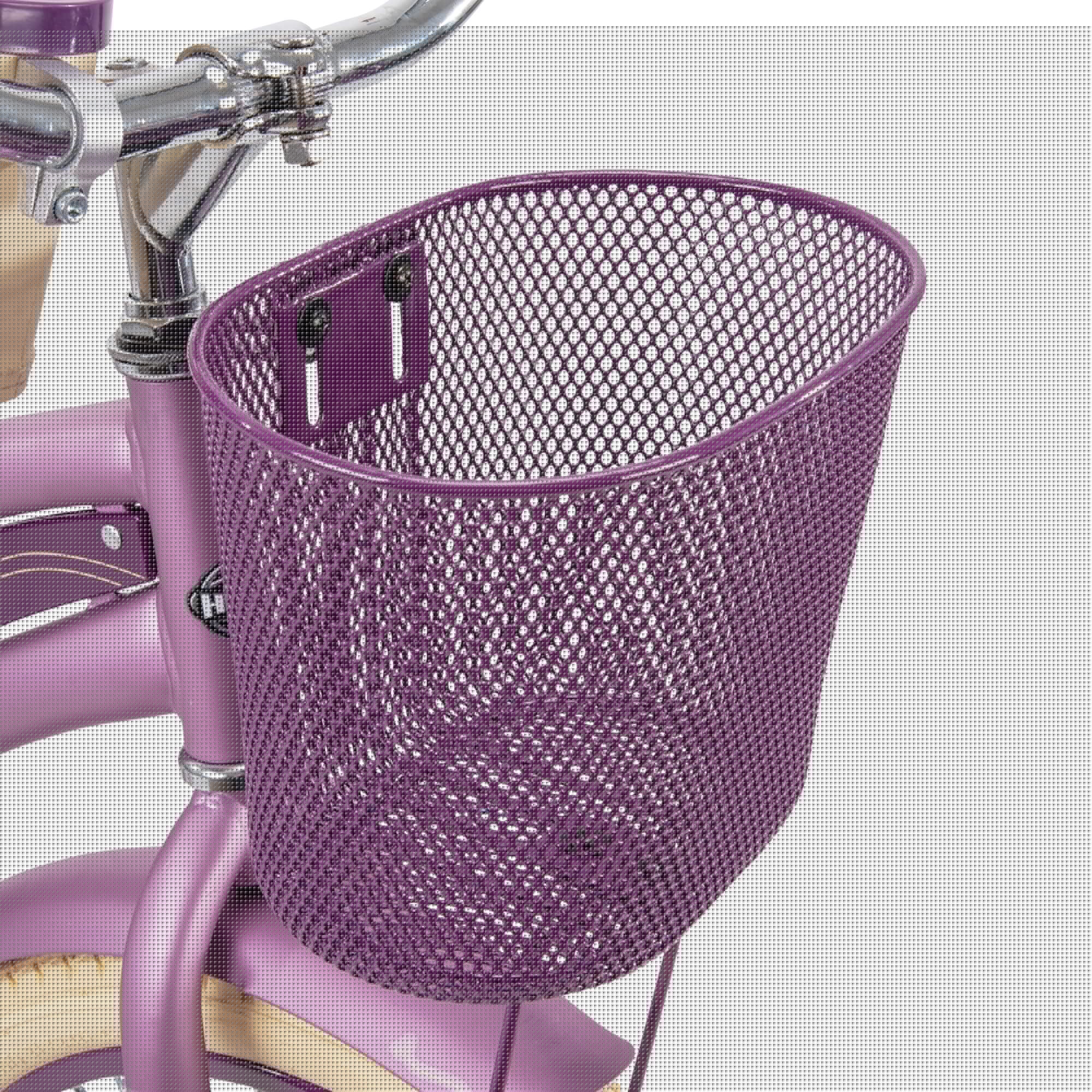 Designed with convenience, style and comfort, the Huffy 24″ Nel Lusso Girls Cruiser Bike has everything you need and more to get your riding started. The Perfect Fit frame is an exclusive design that’s ideal for casual and recreational riders. While you’re seated at a stop, both feet can be kept flat-footed on the ground. The raised handlebars let you ride in an upright riding position, which is more natural for your back, arms and hands. Your legs can extend forward while pedaling, which eliminates wrist, arm, neck and leg fatigue. In addition, the padded seat on this purple cruiser bike is designed to be a little farther back and have a lower center of gravity. It also comes with additional accessories, including a front basket, a rear rack and a beverage cup-holder to make your ride even more comfortable and convenient.