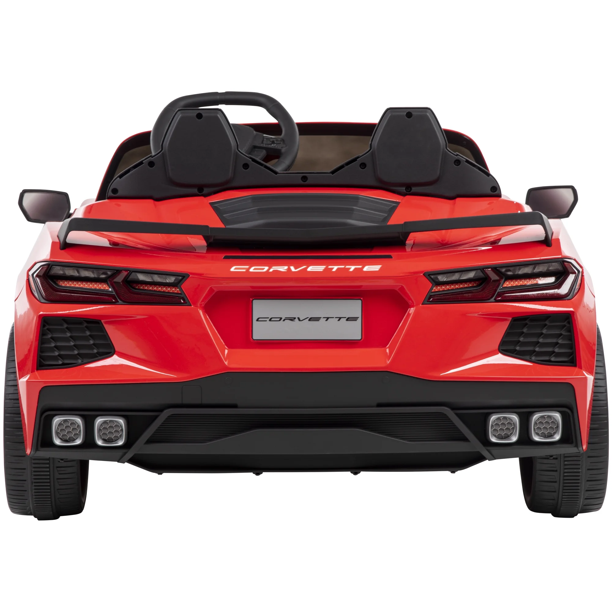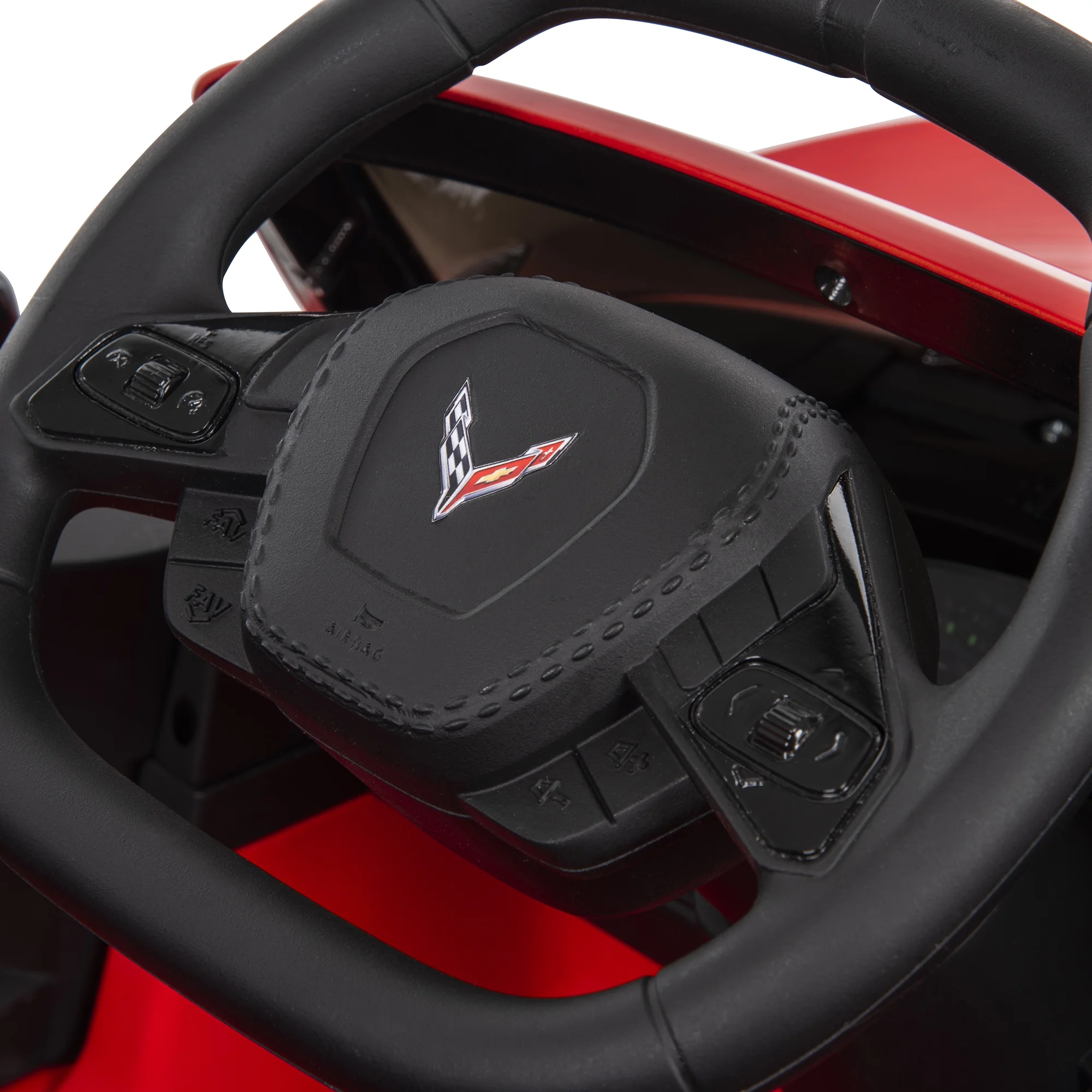 Realistic: Sleek red Corvette Stingray design for an authentic look. Powerful: 12-volt battery offers thrilling speeds up to 5 mph. Safe: Secure seatbelt and wide wheels ensure stability while riding. Interactive: Realistic engine sounds and horn for added fun. Comfortable: Spacious seating for a comfortable ride for kids aged 3+. Easy: Foot pedal control for smooth acceleration and braking. Stylish: Glossy red finish adds to the sporty, iconic appearance.