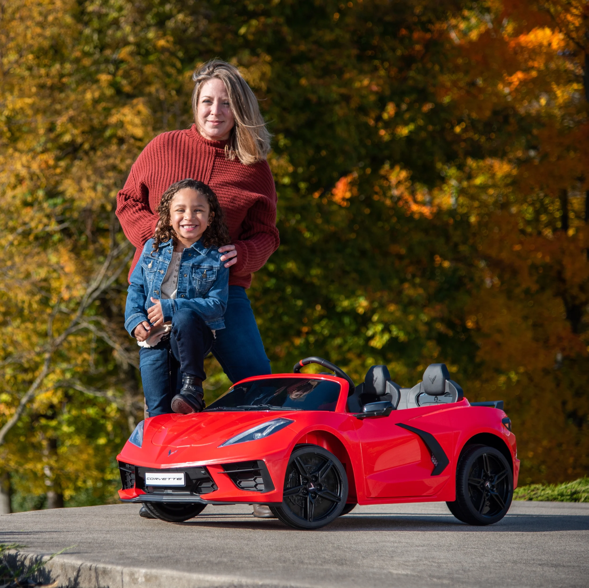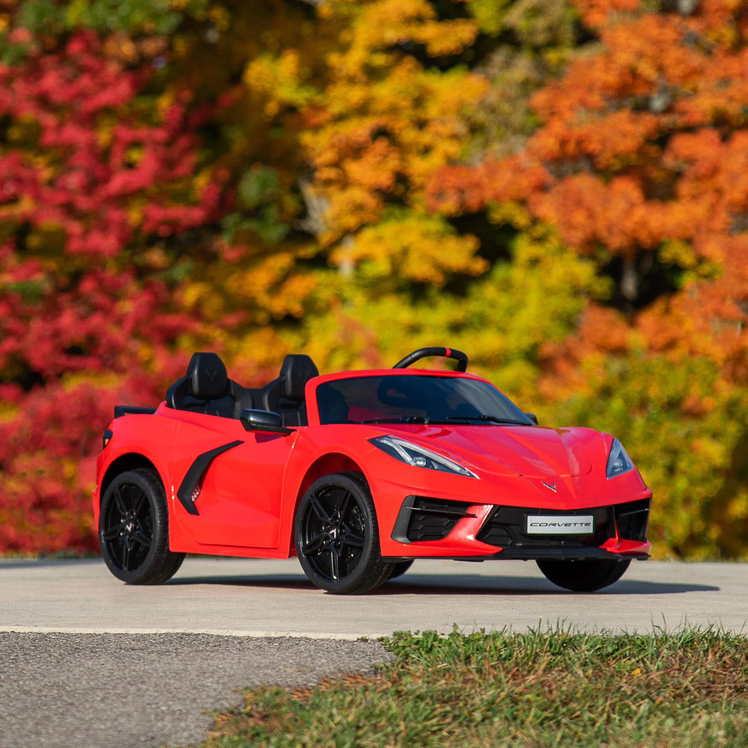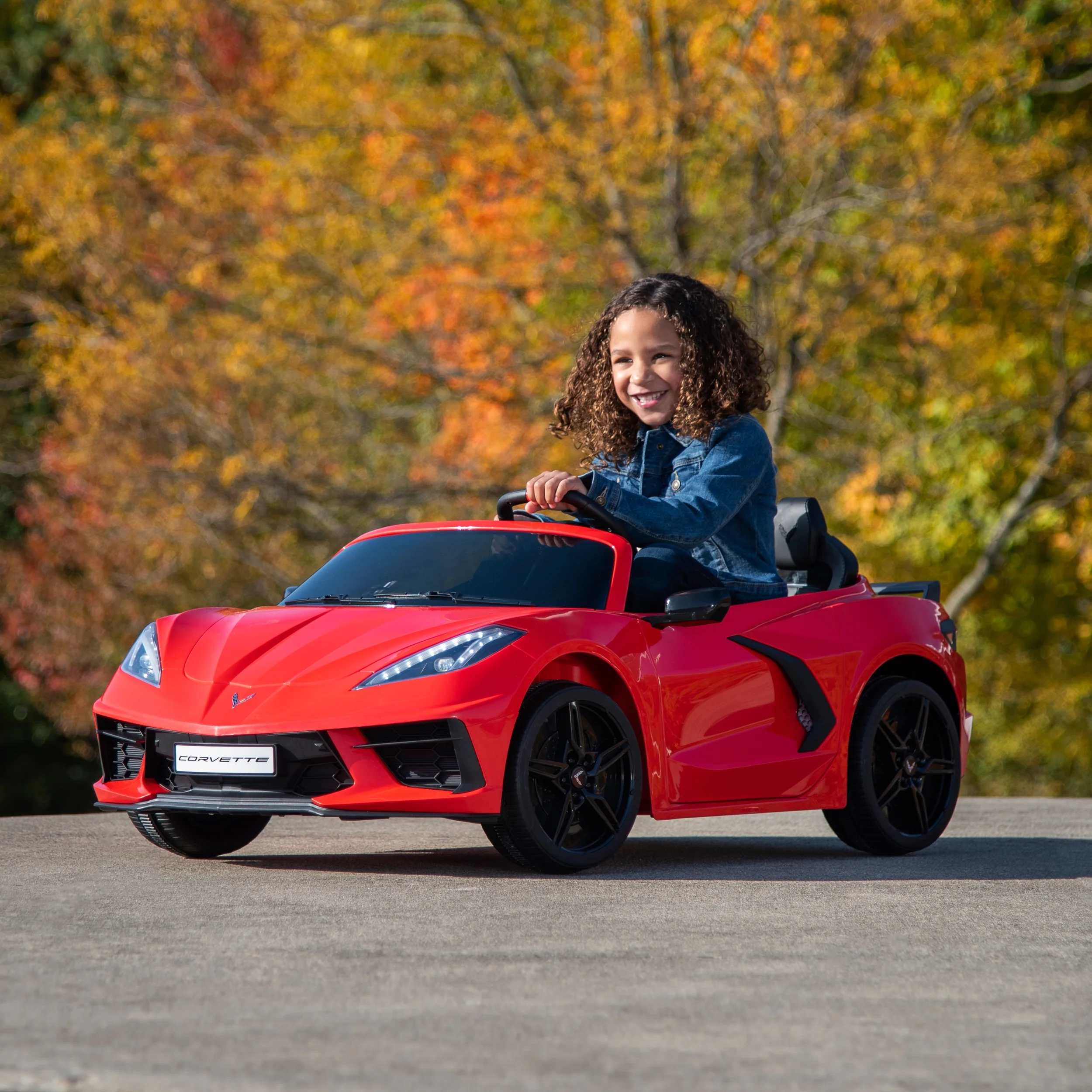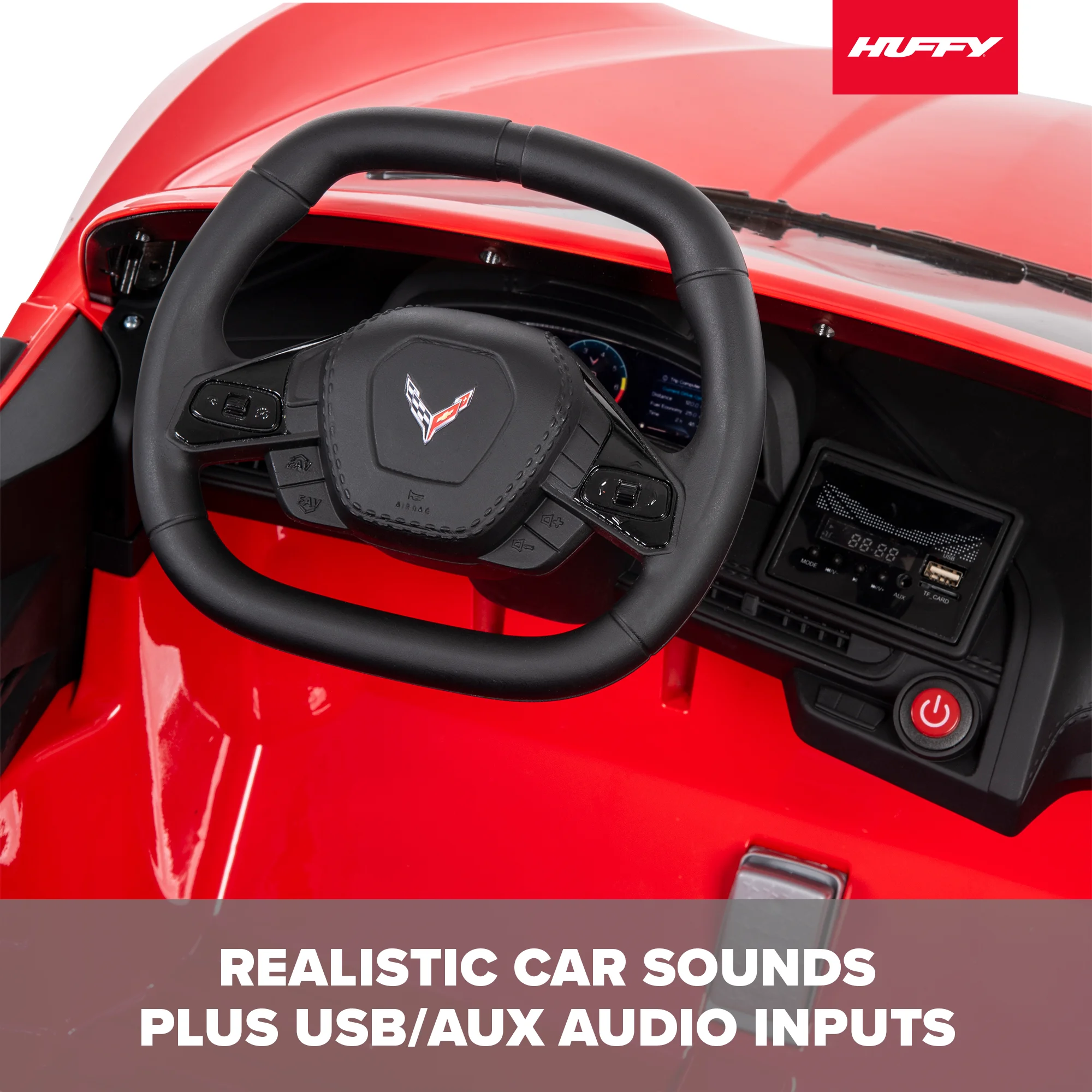 Huffy Corvette Stingray 12V Ride-On Car, Children Ages 3+, Realistic Sounds Let your child experience the thrill of driving with the Huffy Corvette Stingray 12-Volt Ride-in Car! Designed for kids aged 3 and up, this sleek red ride-on mimics the iconic Corvette Stingray with realistic decals and working headlights1. The 12-volt battery powers the car to speeds of 2.5 mph on low and up to 5 mph on high. Your child can easily accelerate using the pedal and start button, while the front disc brake ensures safe stops1. The car features a comfortable seat and sturdy construction, making it perfect for imaginative play. With a maximum weight capacity of 125 lbs, it can accommodate two riders1. The Huffy Corvette Stingray is the ultimate ride-on for young car enthusiasts, combining style, speed, and safety. From Huffy, We Make Fun!
