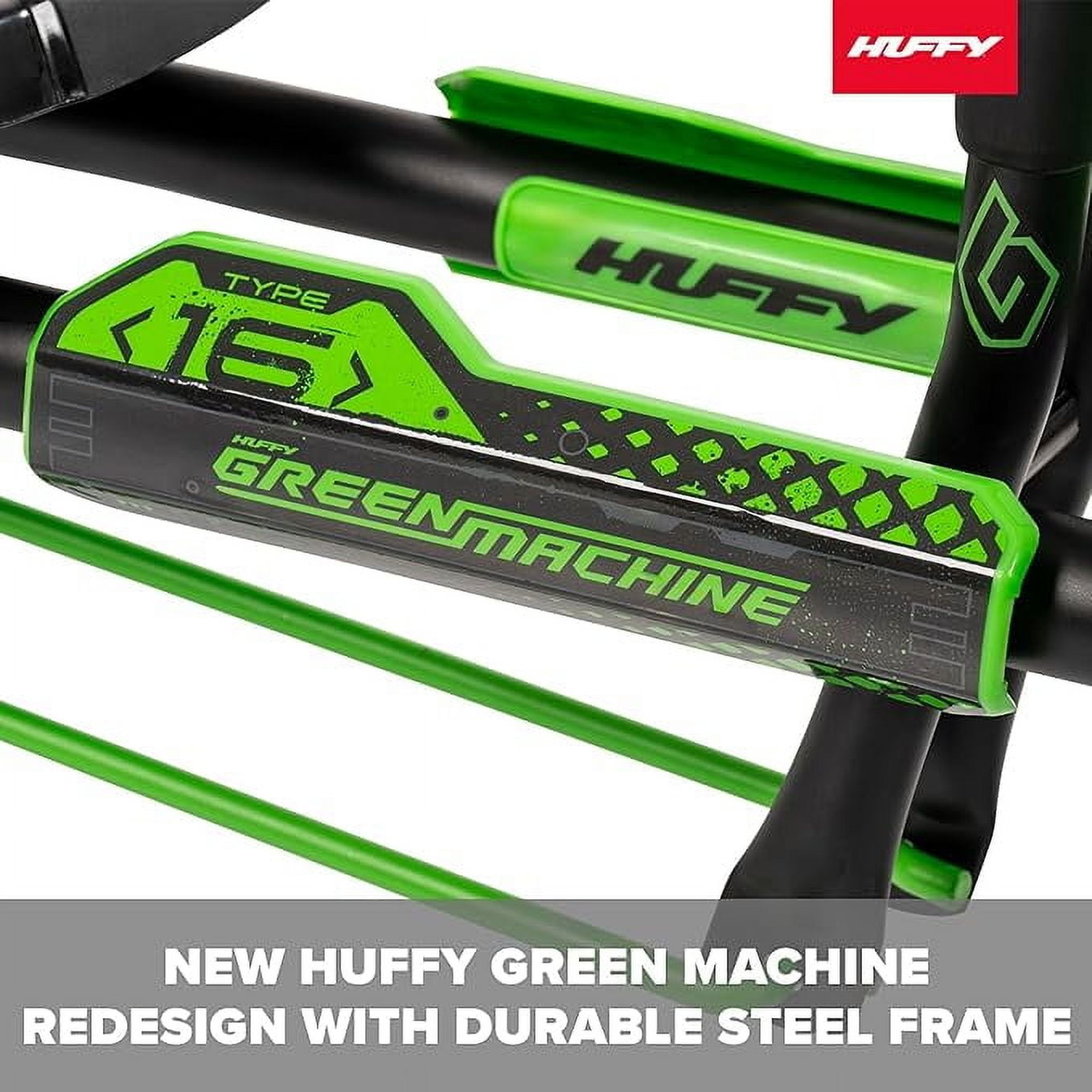Huffy Green Machine 16-Inch Drift Trike, Ages 5+, Adjustable Seat, Green Unleash the thrill of drifting with the Huffy Green Machine 16-inch Drift Trike! Perfect for young adventurers aged 5-8, this trike features an ergonomic hi-tensile steel frame in sleek black and green. The tool-free adjustable seat offers two positions for a perfect fit, ensuring comfort during every ride. Equipped with durable injection-molded rear wheels, the Green Machine provides supreme drifting potential and enhanced stability. Dual steering levers make it easy to engage in exciting drifts and spins, while the reliable coaster brakes keep the rider in control. The wide front tire ensures a smooth ride on various surfaces, adding to the overall fun and excitement. This trike is designed to bring maximum fun and adventure to every ride, making it a must-have for any young thrill-seeker. From Huffy, We Make Fun!