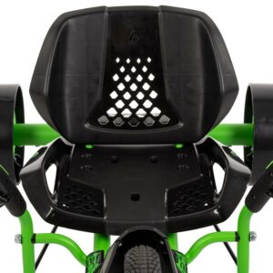 – Seat: The comfortable redesigned saddle offers tool-free adjustability with 3 different sizes, keeping the rider secure throughout spins and drifts