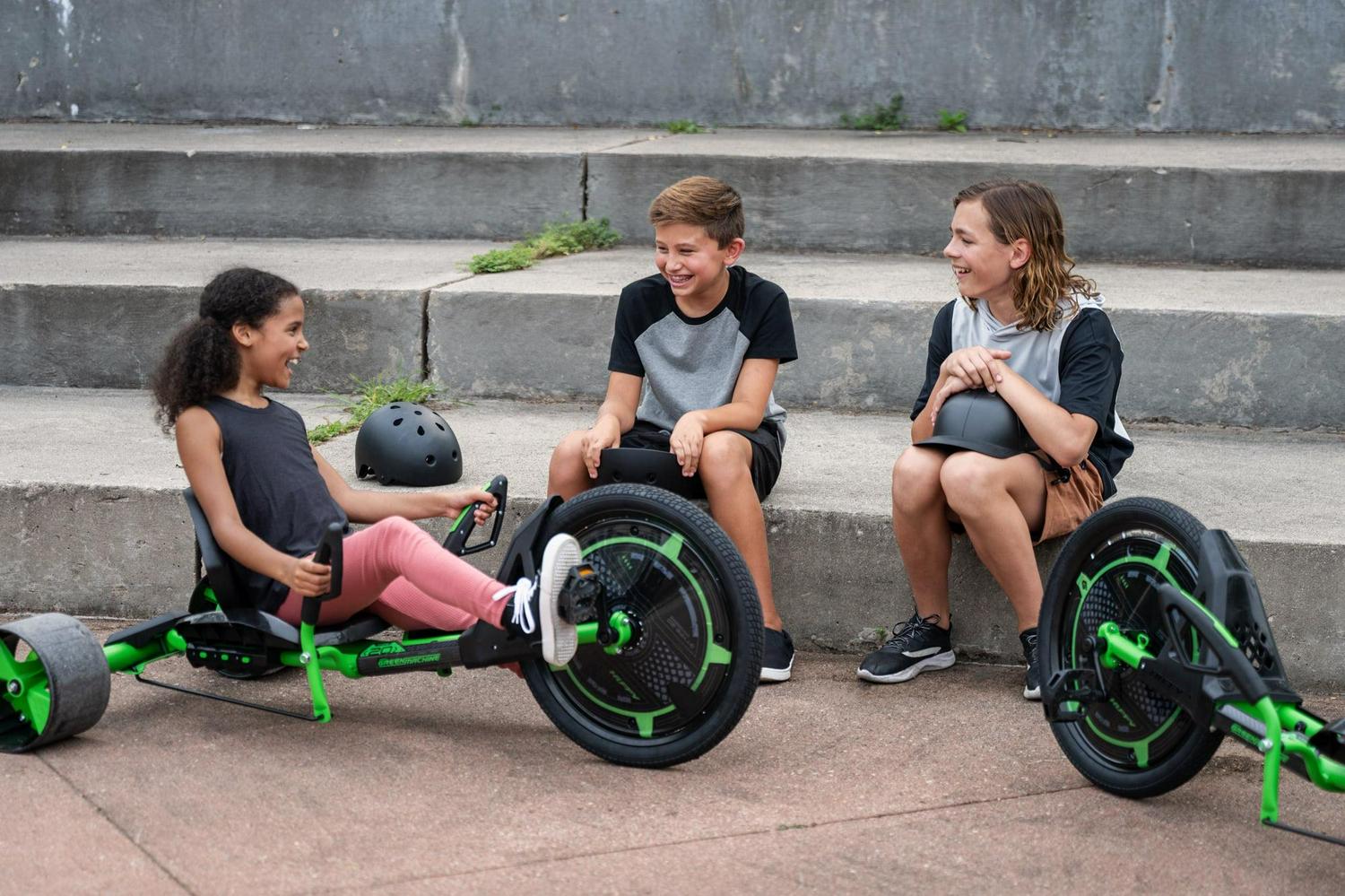– 20-inch Huffy Green Machine Drift Trike: The all-new Huffy Green Machine boasts premium specs, a sleek design, and the Green Machine thrills you know and love.