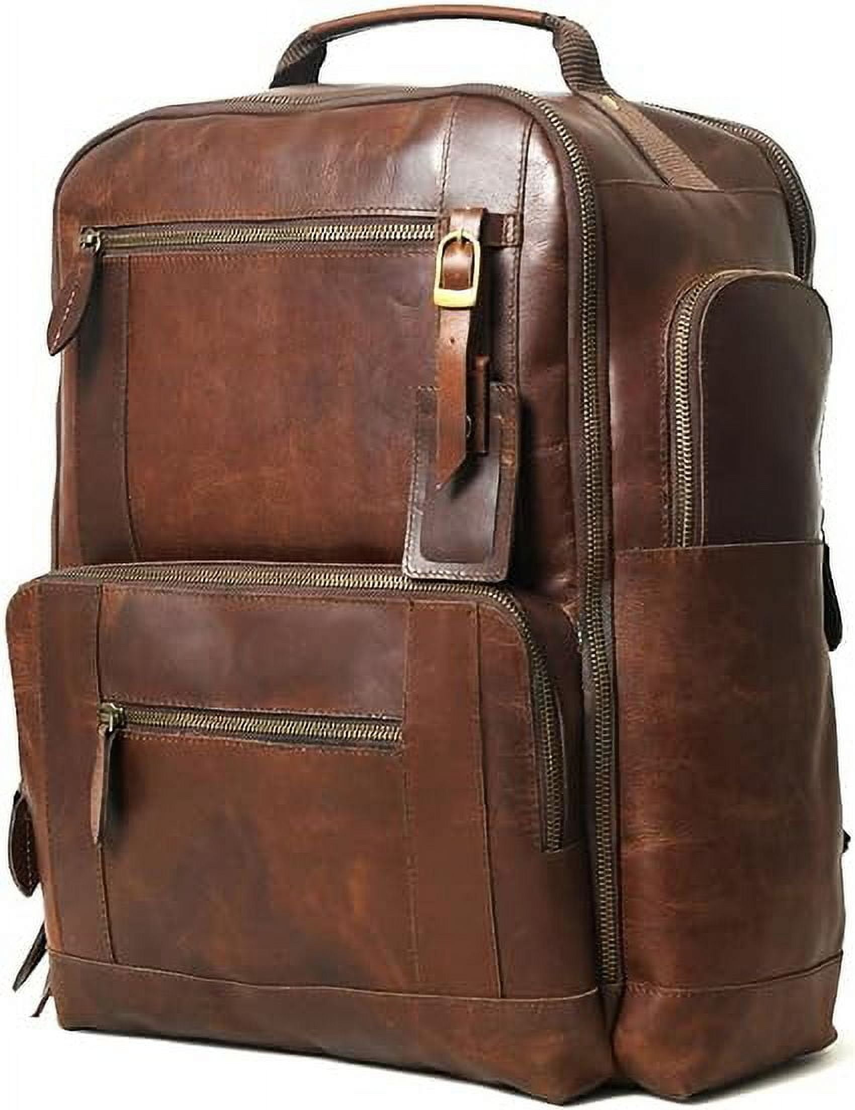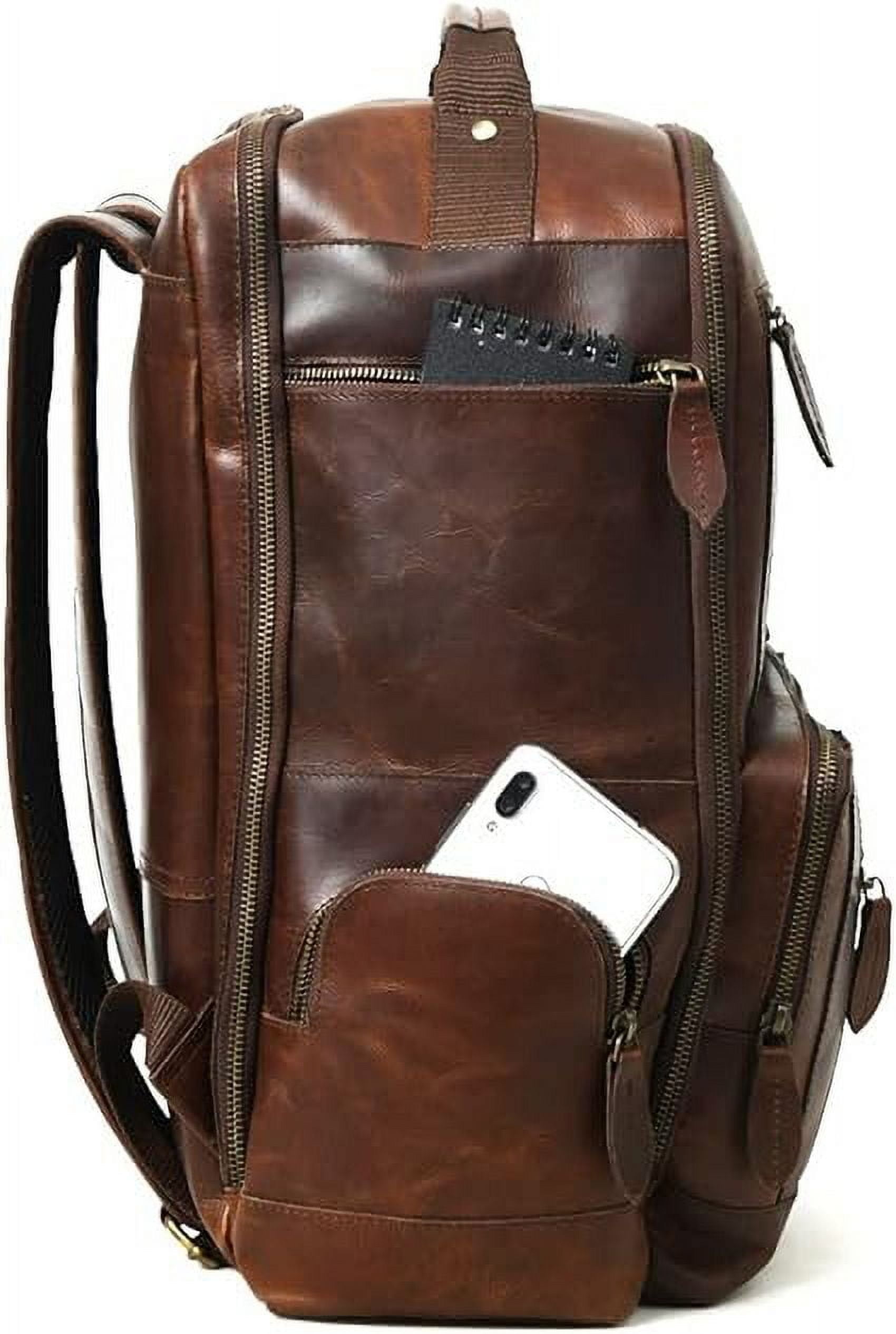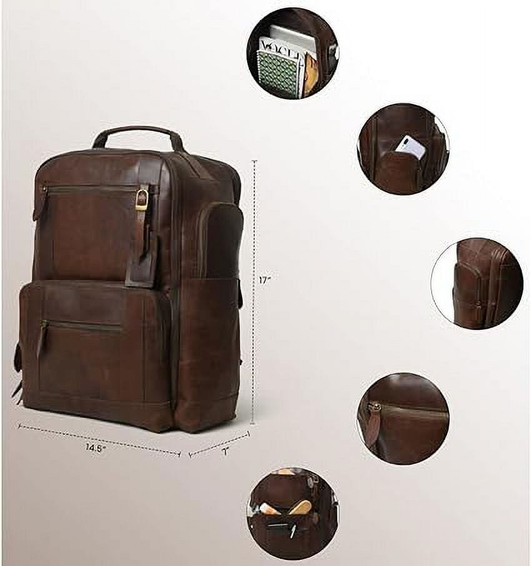 BEST BACKPACK FOR TRAVELERS: Our leather travel bags for men are designed for the doers in life. Made with Genuine and premium quality of Buffalo Leather to protect your laptop and also allows for heavy duty, daily use items. This mens leather backpack can also be used in your professional and business purposes. International travel or take it with you on a daily basis, to the edge of the world. LARGE CAPACITY: This brown leather backpack is a carry everything leather bag with 16” Height X 12” Width X 4” Depth which allows to carry large laptops upto 18 inches, tablets & all other necessary apparel. Front big and small zipper pockets can be used to carry items that are frequently used. Multi pockets and large enough to hold your laptop, books, files, magazines, ipad, wallet, several clothes for outdoor travel overnight. HANDCRAFTED: Our buffalo leather travel bag rucksack or leather back gear is a mighty road-beast. At GRATLIN all leather laptop backpack for women made with no cutbacks in craftsmanship so never to be surprised by something breaking right when it’s not supposed to. This leather backpack purse boasted with solid construction with tensile stitching & rust-resistant. MULTI POCKET BACKPACK: Our backpack consists of name tag zipper pocket, front top side small zipper pocket, other side umbrella or bottle zipper pocket, two compartments, 2 small pockets at front with 1 big pocket and spacious compartment for essentials, a zipper pocket at back compartment laptop sleeve for 18 inch laptop, small one more pocket for documents, files or papers with handle on the top. BUY WITHOUT RISK: This buffalo leather rucksack knapsack can be used as a professional mens leather business backpack, leather computer bag, daypack, international travel leather back pack, satchel backpack purse for women, outdoor backpacks, hiking backpack, sport backpacks, weekend shopper genuine leather backpack.