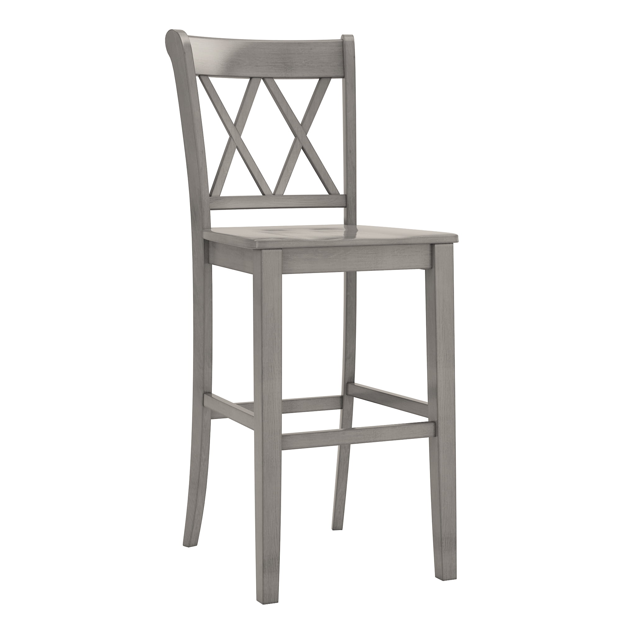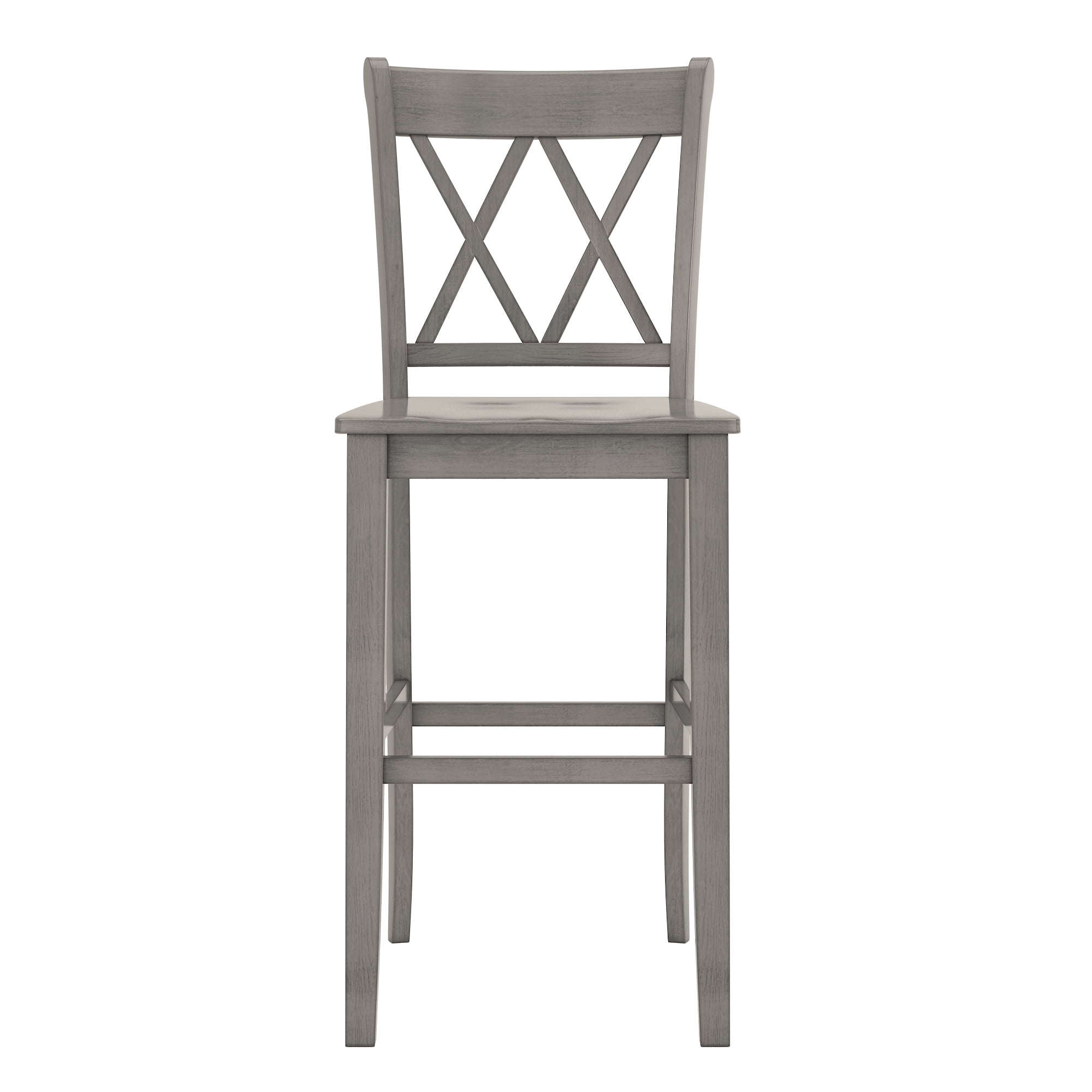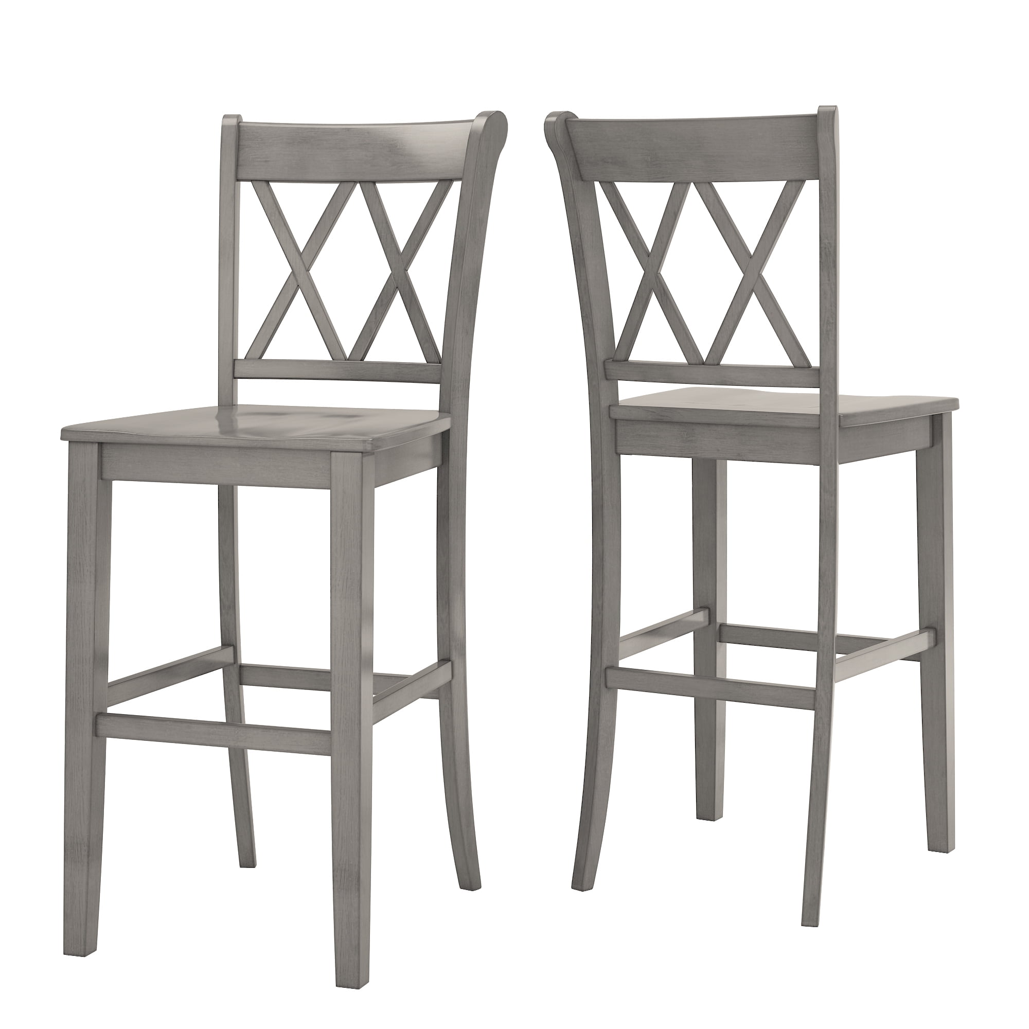 Weston Home Farmhouse Vintage Double X Solid Wood Bar Height Chair, Set of 2, Antique Grey