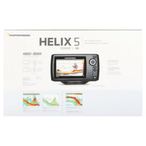 If fishing is in your DNA, there’s no such thing as “too early” or “too far.” High expectations go with the territory. The HELIX5 Series from Humminbird answers the call with an uncompromising, 5″ widescreen display. This HELIX 5 SONAR G2 model features Dual Beam PLUS and Switch Fire. Switch Fire Sonar: Take command of how your sonar returns appear. With two display modes, you can add or remove detail, account for water depth, temperature and turbulence, even watch lure presentations – all at the push of a button. Dual Beam PLUS Sonar: Two beams combine for great detail and a generous coverage area, helping you identify fish, structure and contours. Use the narrow beam for high-accuracy returns of fish, structure, detail and the bottom profile. opt for the wide beam when you want a larger search area. You can view the beams separately, side-by-side or blended together for the complete picture. Your coverage area will be equal to your depth. One-year limited warranty.