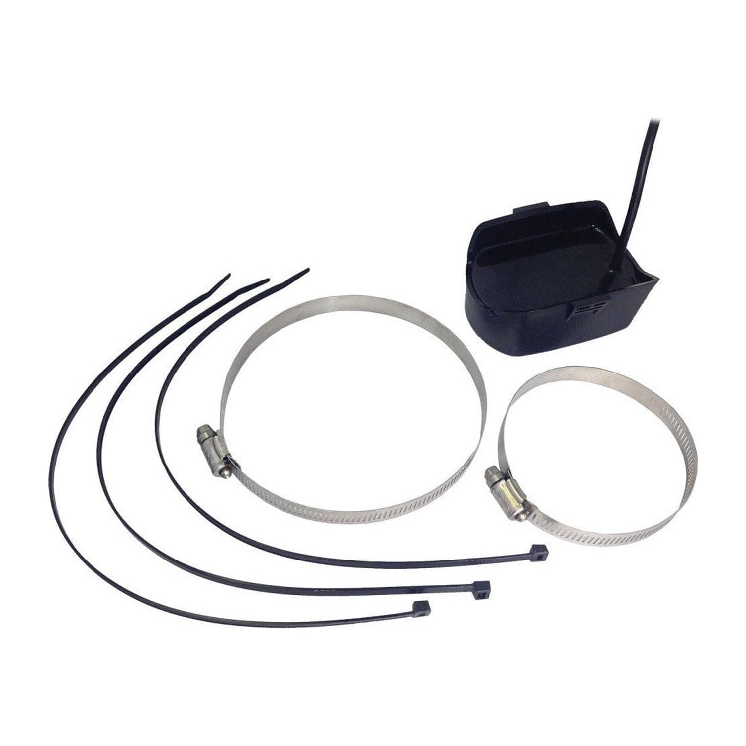 Dual/Side Imaging, 20/60/180 degree, 200/83/455 kHz with built in temperature. 15′ cable. Includes a hose clamp for attaching to trolling motor.