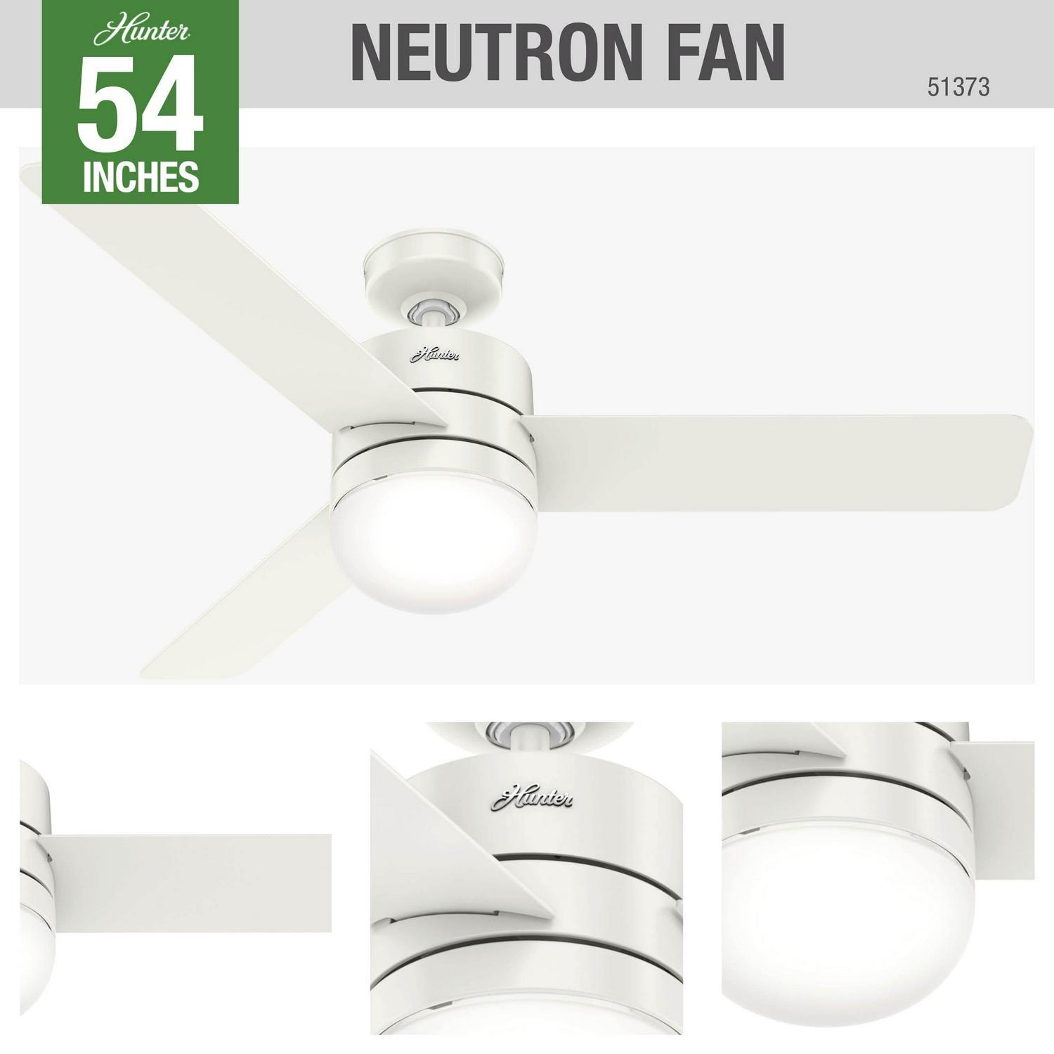 Hunter 54 inch WiFi Neutron Fresh White Ceiling Fan with LED Light Kit and Handheld Remote