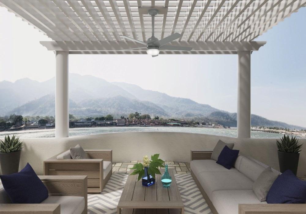Sleek and strong amidst the elements. The Anorak outdoor ceiling fan is equipped with our WeatherMax and SureSpeed technologies for cooling comfort in outdoor spaces, rain or shine. Set the perfect ambiance using the premium wall control to control the three fan speeds and dimmable LED light.