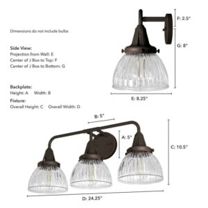 An antique look with industrial details. The Cypress Grove 3 light vanity is an elegant twist on modern industrial lighting. This modern vanity light boasts fluted glass detailing and an indoor damp rating, making it a wonderful addition to spaces exposed to moisture, like bathrooms. Carry this industrial theme throughout your space by pairing this vanity light with other Cypress Grove fixtures.