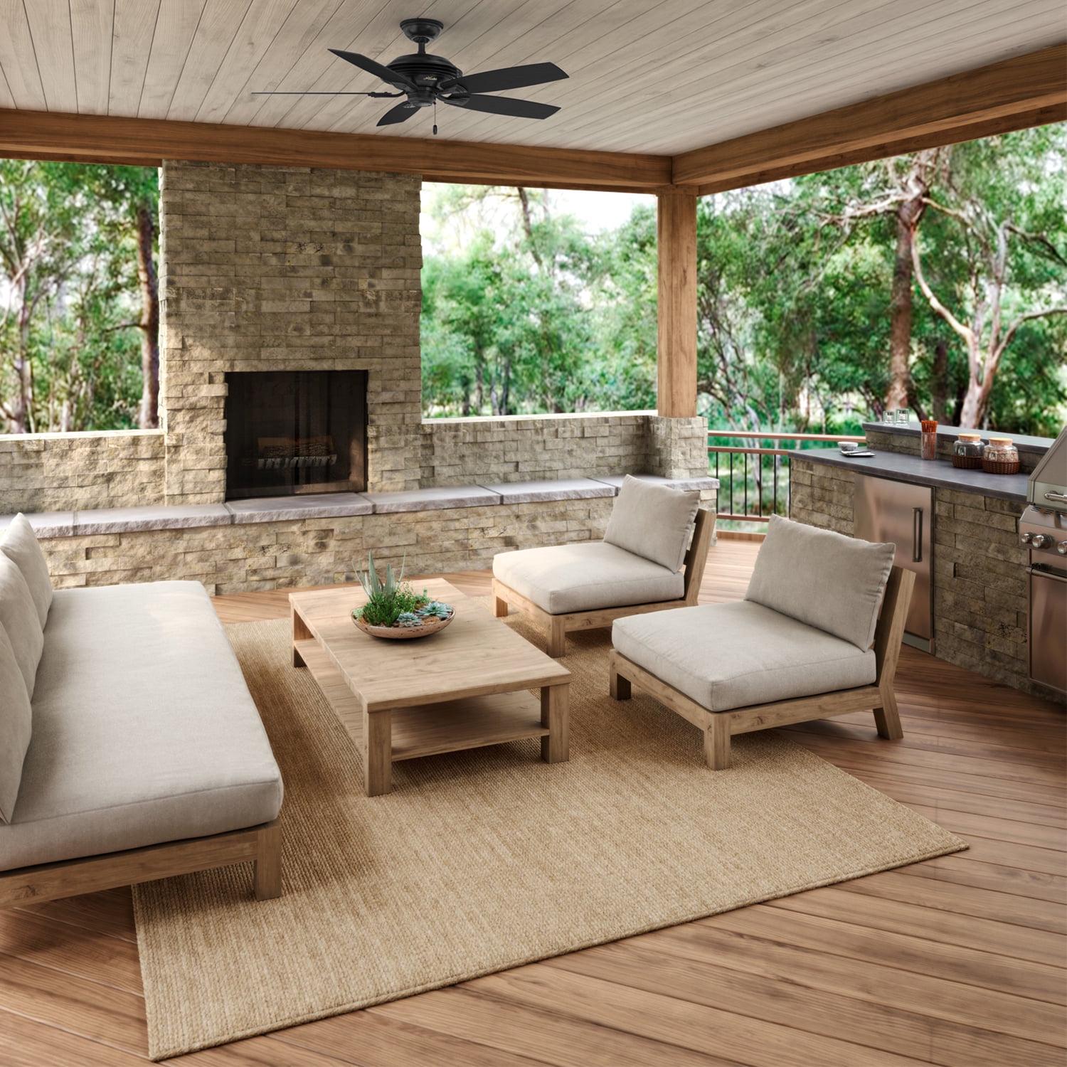 Don’t let your sheltered patio become a no-man’s land during those scorching summer days. With the Hunter Fan Company Rainsford 52 Inch Outdoor Ceiling Fan you can breathe life back into your favorite summertime spots with a cool, comforting breeze. The Rainsford’s casual design and universal appeal fits with any décor style. Made with stainless steel hardware, this wet-rated fan is perfect for spaces exposed directly to weather like patios and pergolas. This powerful fan also works great indoors. With up to 400 square-feet of coverage, this fan is ideal for medium to large areas in your home like enclosed porches, master bedrooms, and garages. A reversible, 3-speed Direct Drive motor provides unparalleled power, silent performance, and reliability for decades to come. Installation is no sweat thanks to the included 3-inch and 2-inch downrods that allow for standard profile mounting. Keep your favorite outdoor spots cool and comfortable even during the dog days of summer. With the Hunter Fan Company Rainsford 52 Inch Outdoor Ceiling Fan, beating the heat is a breeze.