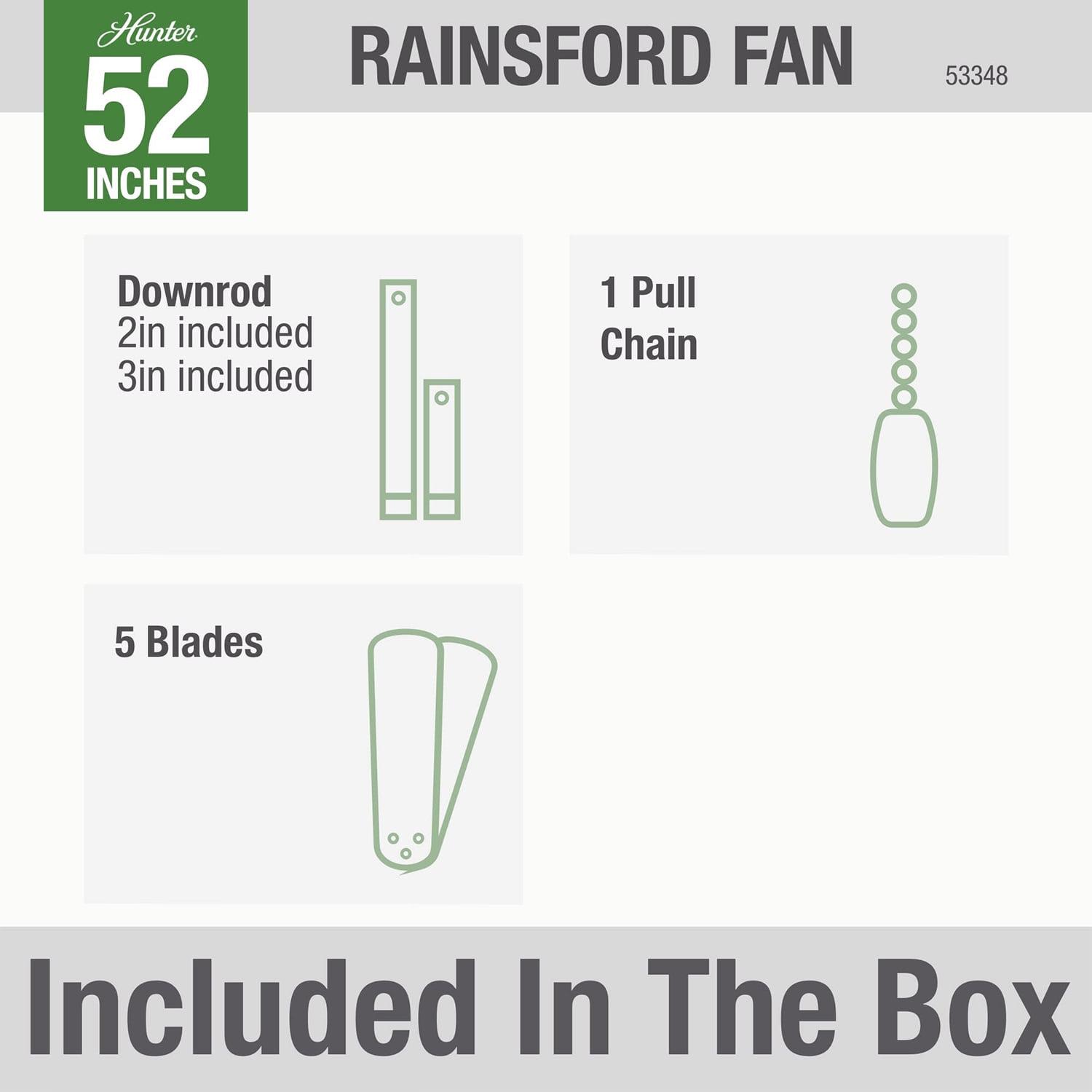 Hunter Fan Company 55348 Rainsford 52 Inch, 3 Speed Ceiling Fan, Black