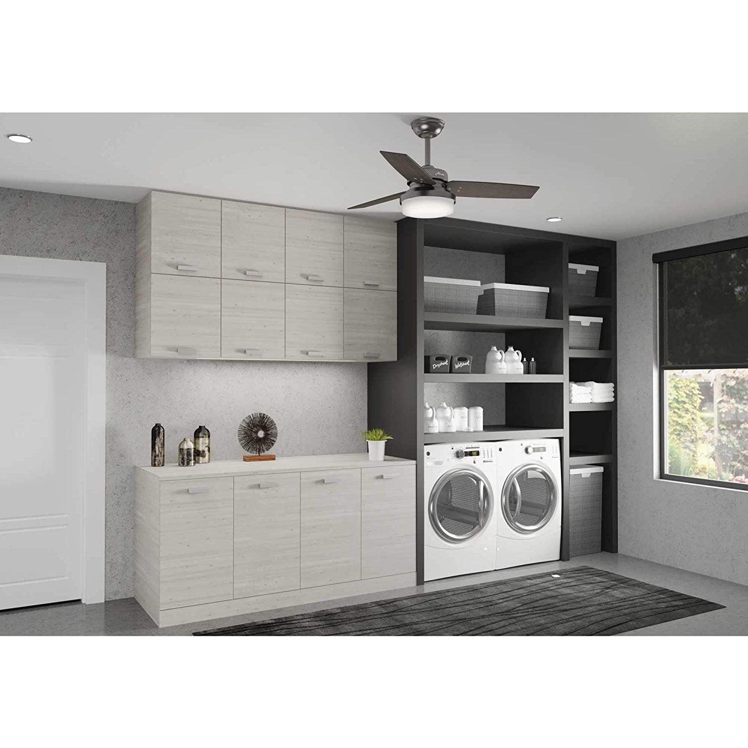– Includes 3 gray blades, LED light bulbs, and a handheld remote for easy speed and lighting adjustment from anywhere in the room