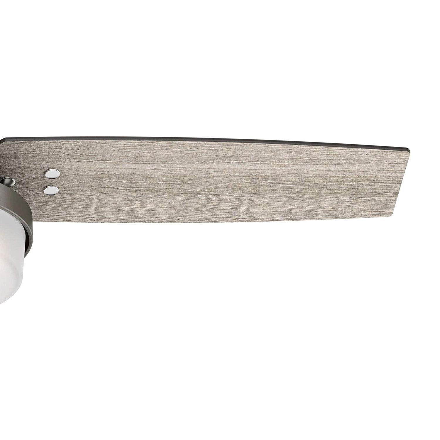 Feel the utmost comfort in your home by adding light and a cool breeze. The Hunter Fan Company Sentinel Ceiling Fan helps keep you cool while circulating fresh air and matching a wide array of modern interior designs. This impressively styled fan cools you off and looks great doing it. Keep air moving without distracting noise with the Whisper Wind motor that delivers ultra-powerful air movement with stunningly quiet performance. Combined with the energy-efficient, dimmable LED lightbulb, this fan is ideal for all your large indoor spaces. This set fan comes with both a 2-inch and 3-inch downrod, so you can optimize the placement to best suit your needs. Additionally, a universal, hand-held remote allows you to control this fan from anywhere in the room with ease. Having a great ceiling fan makes all the difference in a room. Efficiently circulate air, light up your room, and make a stylistic statement with the Hunter Fan Company Sentinel Ceiling Fan.