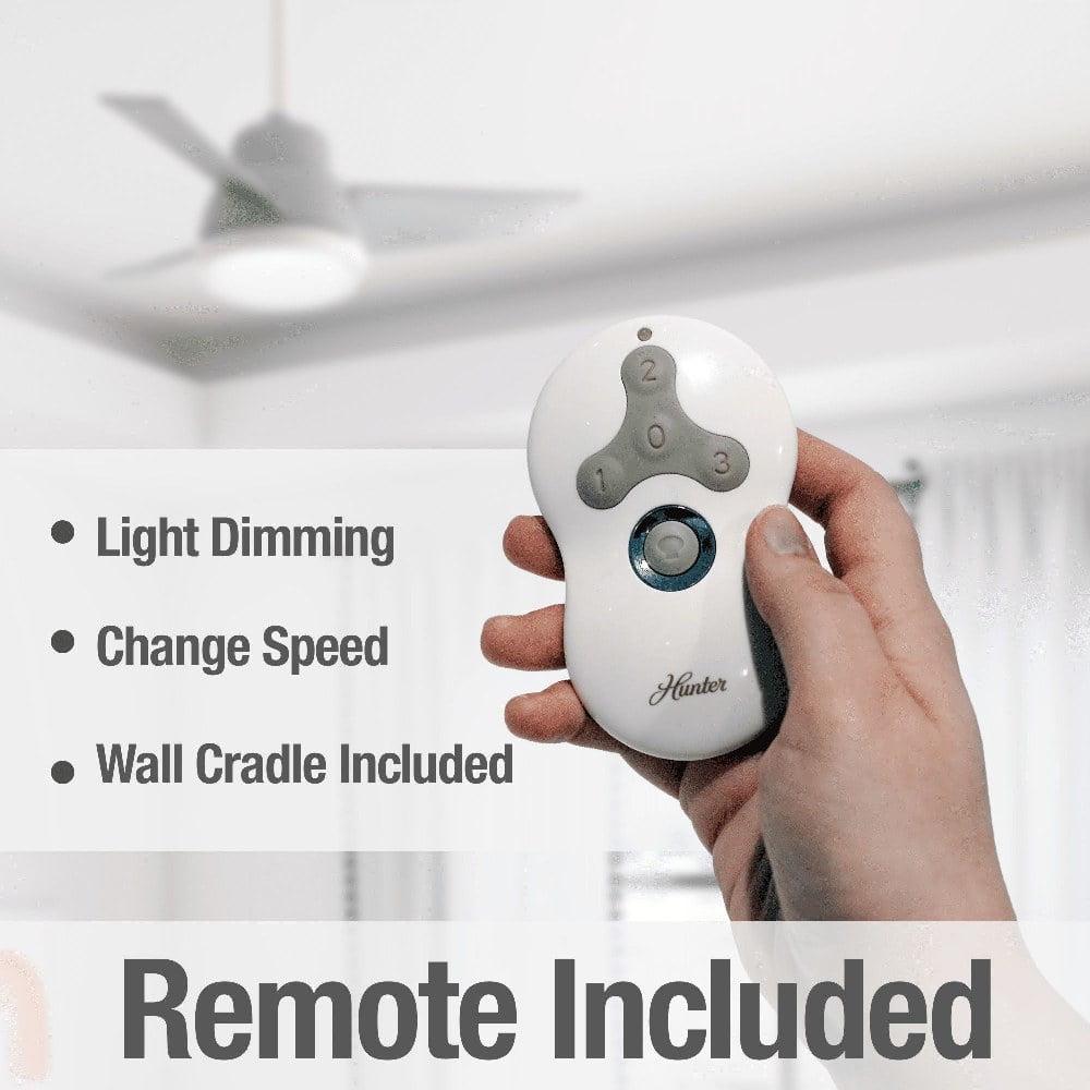 Feel the utmost comfort in your home by adding light and a cool breeze. The Hunter Fan Company Valda Ceiling Fan adds a big personality to rooms needing a modern finishing touch, making this fan the perfect complement to your home. Designed with gray dove blades, this Valda ceiling fan adds a subtle pop to your style to update traditional or transitional spaces. With 3 reversible speeds, this ceiling fan has a WhisperWind motor that delivers ultra-powerful air movement with whisper-quiet performance. Combined with energy-efficient, dimmable LED lightbulbs, this fan is ideal for all your large indoor spaces. Customize this ceiling fan’s distance from your ceiling with the included 2 and 3-inch downrods and easily adjust the fan speed and intensity of the light from anywhere in the room with the handheld remote control. The standard profile mounting of this ceiling fan allows you to mount it in your home office or kid’s bedroom with ease. Add the Valda Ceiling Fan from Hunter Fan Company to any small room in your home for a unique touch.