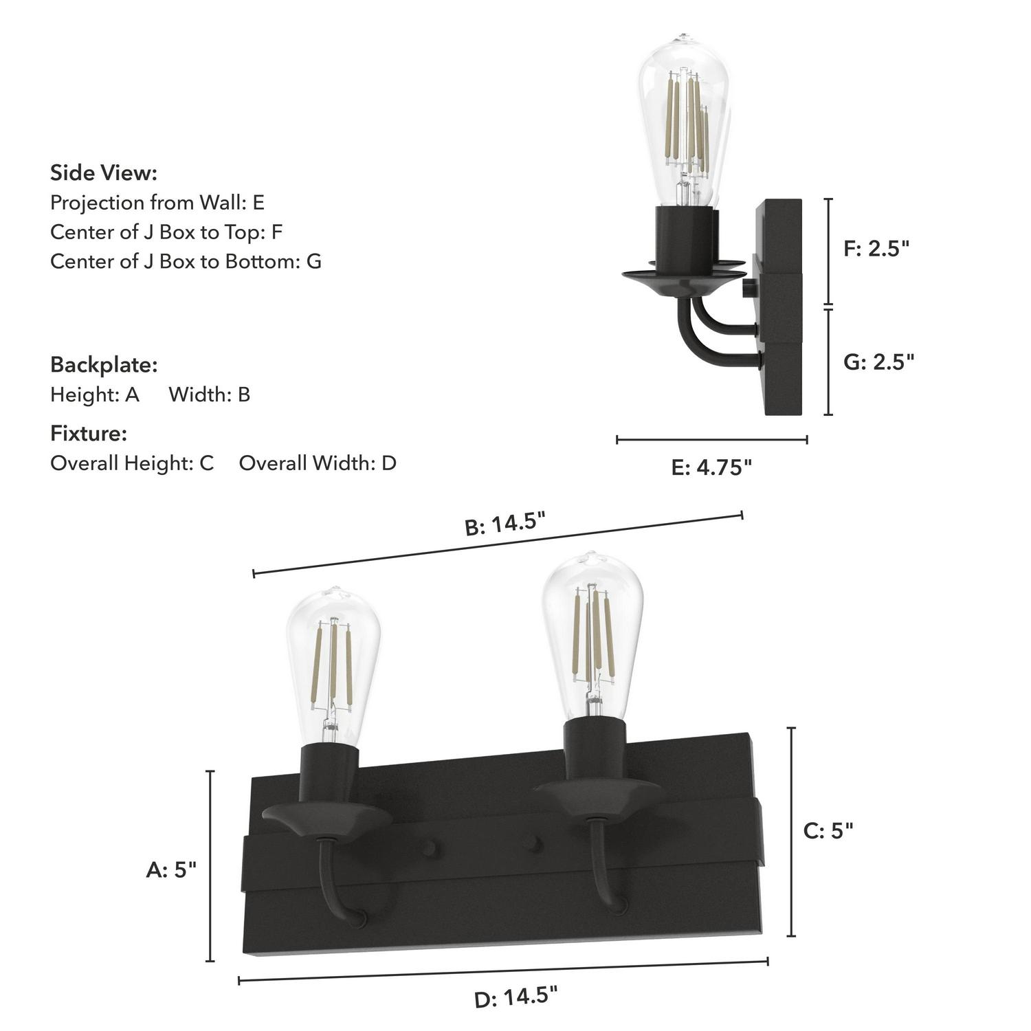Hunter Fans-19430-Collection: Perch Point, Material: Aluminum, Finish Color: Noble Bronze, Width: 14.5″, Height: 5″, Length: 4.75″, Depth: 4.75″, Height From Outlet Box: 2.5″, Backplate Width: 14.5″, Backplate Length: 5″, Lamping Type: Incandescent, Number Of Bulbs: 2, Wattage: 60 Watts, Dimmable: Yes, Desc: Start the day under the light of the Perch point vanity. With a simple design it gives your space an intimate feel that is part mountain modern, part rustic, and illuminates the space beautifully. Add sconces from the Perch Point collection on either side mirror and take the effect and the light to a new heights! INDOOR-DAMP RATED: For use in indoor spaces exposed to humidity like bathrooms and laundry rooms. BULB RECOMMENDATION: Maximum 60 W per light bulb or equivalent LED bulb. Bulbs not included. PICTURED HERE: Match our image using ST64 Edison light bulbs.,-Perch Point – 2 Light Bath Vanity-5 Inches Tall and 14.5 Inches Wide-Noble Bronze Finish