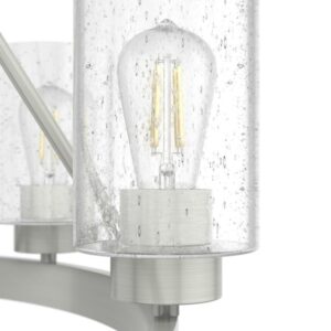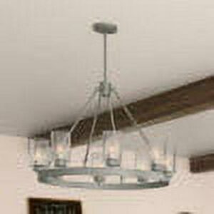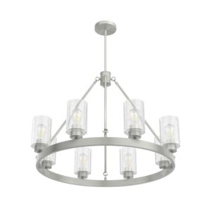 A revised classic design with statement-making elements. The Hartland round chandelier s showcase feature is the clear seeded glass shades. Relish the way the glass catches the light and sparkles in a beautiful effect with this 8-light chandelier. The textured glass and strong lines in this round chandelier make for a perfect finishing touch in your space.