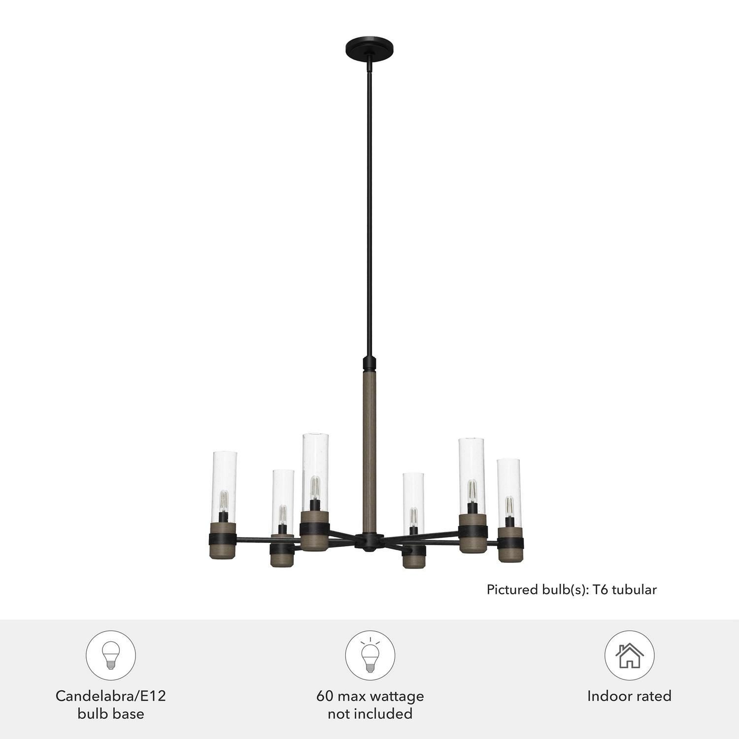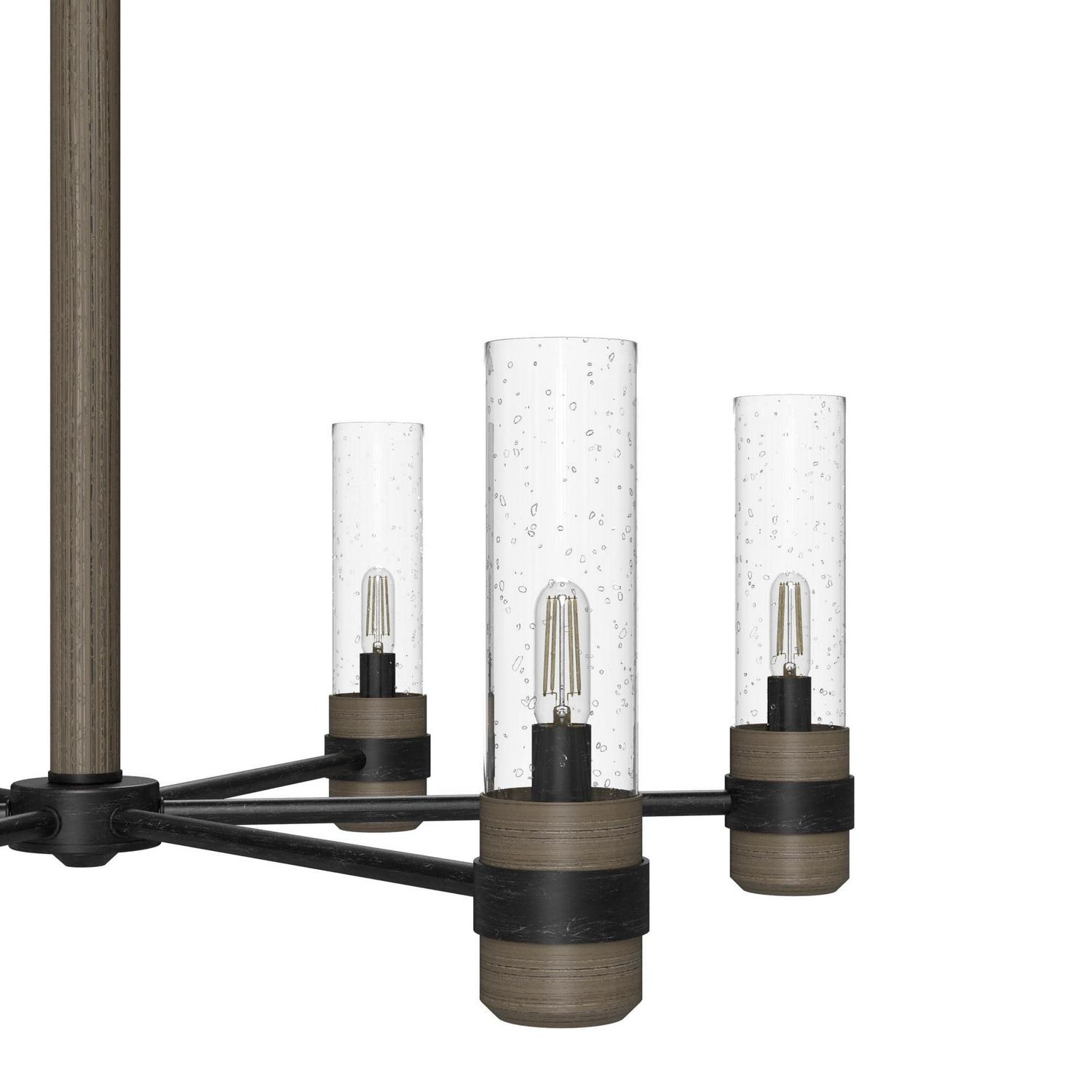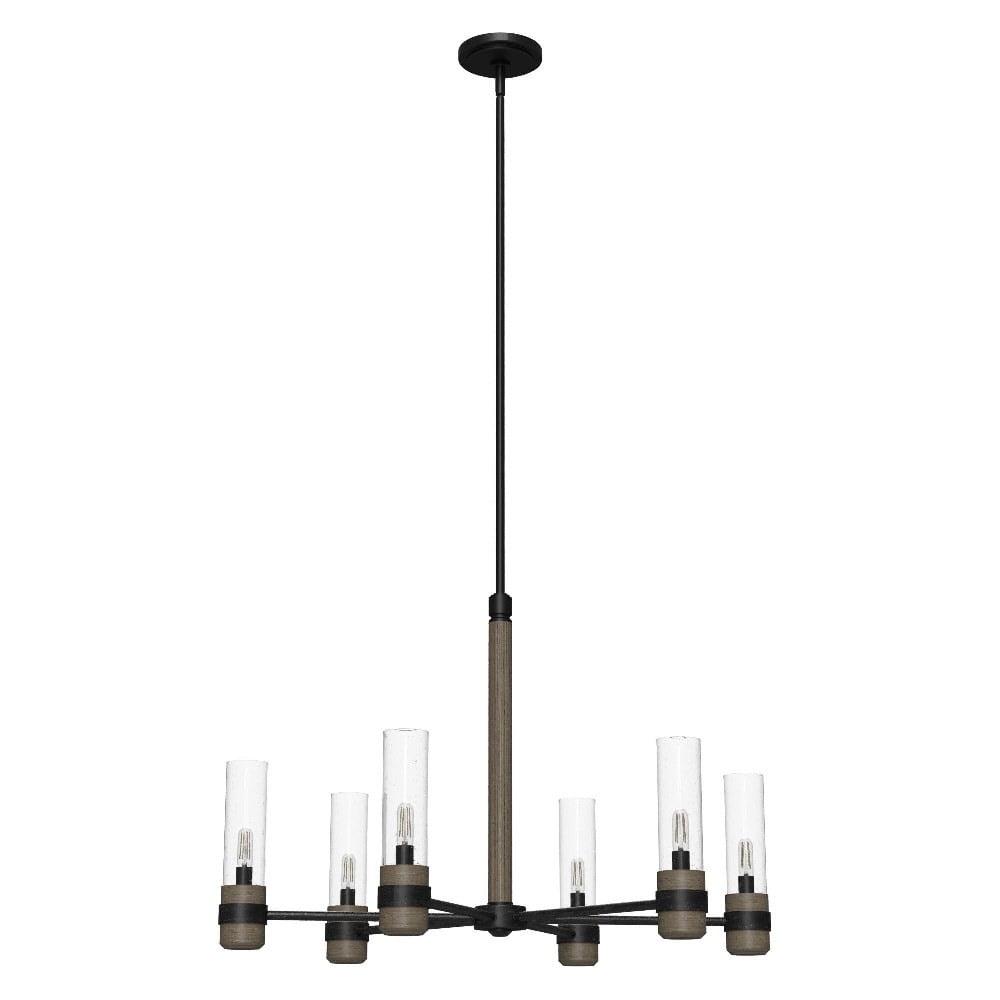 Hunter River Mill Rustic Iron and French Oak with Clear Seeded Glass 6 Light Chandelier Ceiling Light Fixture