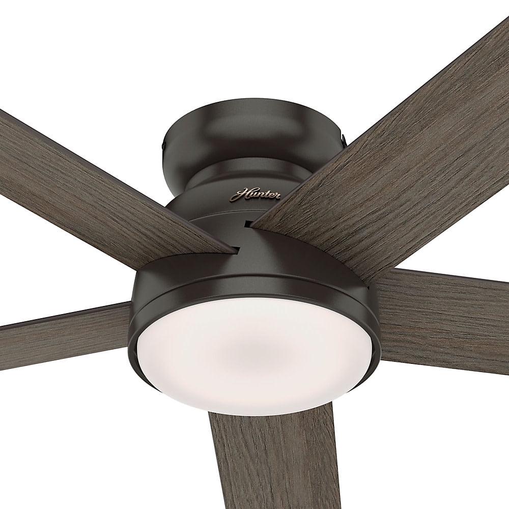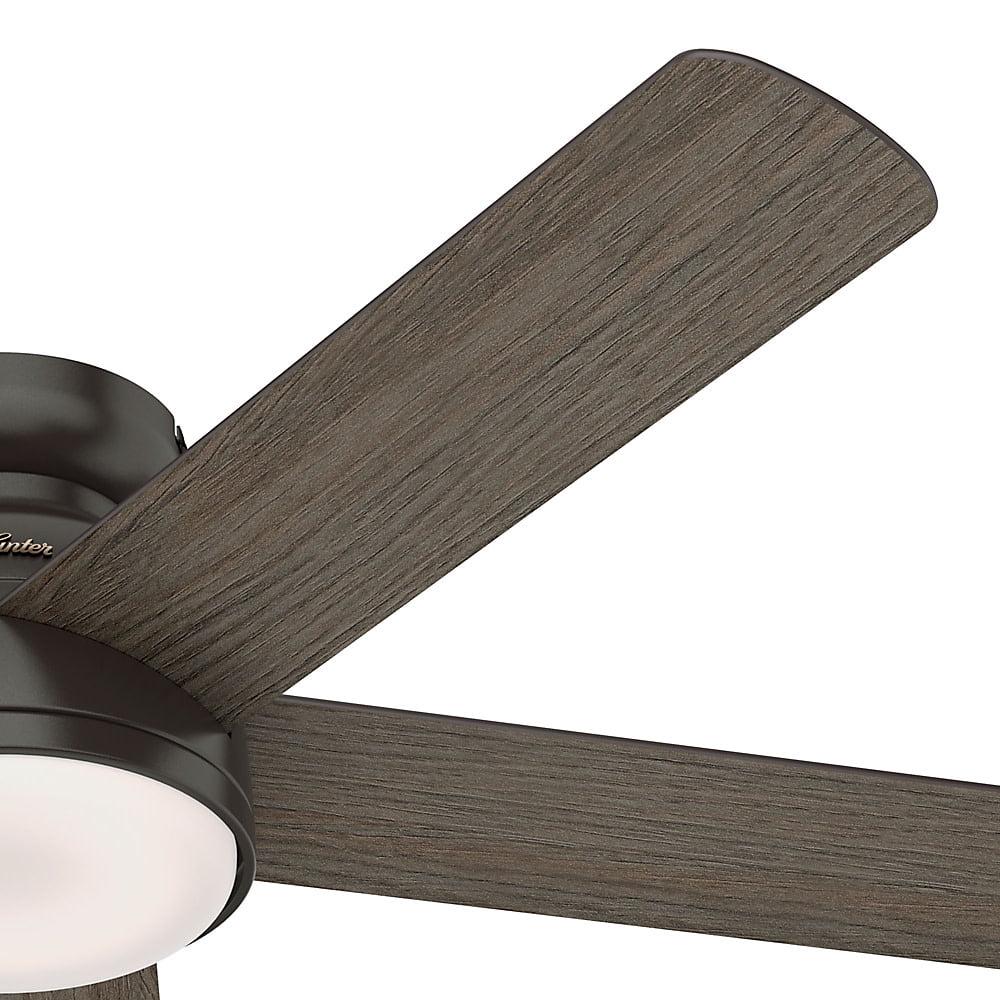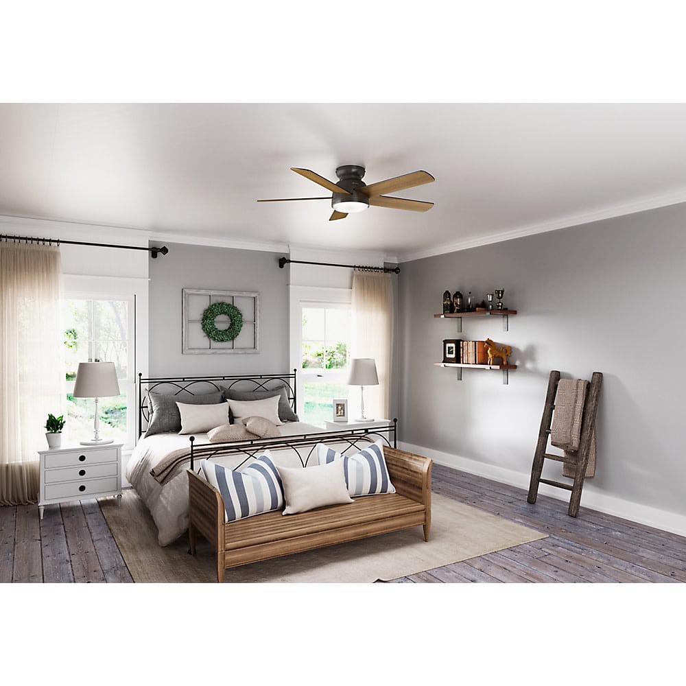 SIMPLEconnect WiFi ceiling fan enabled for home automation featuring integrations with Amazon Alexa, Apple HomeKit , and Google Assistant putting the ultimate control in the palm of your hands or by the sound of your voice. Reversible, 3-speed WhisperWind motor delivers ultra-powerful air movement with whisper-quiet performance so you get the cooling power you want without the noise you don t. Specially designed low-profile housing fits flush to the ceiling making it ideal for use in rooms with low ceilings less than 9′. 13 degree blade pitch optimized to ensure ideal air movement and peak performance. Rated for indoor spaces only. Includes Handheld Remote for easy speed and lighting adjustment from anywhere in the room. 5 American Walnut / Greyed Walnut reversible blades included. LED light kit for lower energy consumption, brighter light output and a longer lifespan than traditional bulbs. Includes 1 16W energy-efficient, dimmable LED bulbs to give you control of the ambiance in your space.