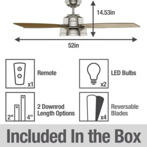 Hunter Wingate 52 Home Ceiling Fan with LED Light and Remote, Brushed Nickel