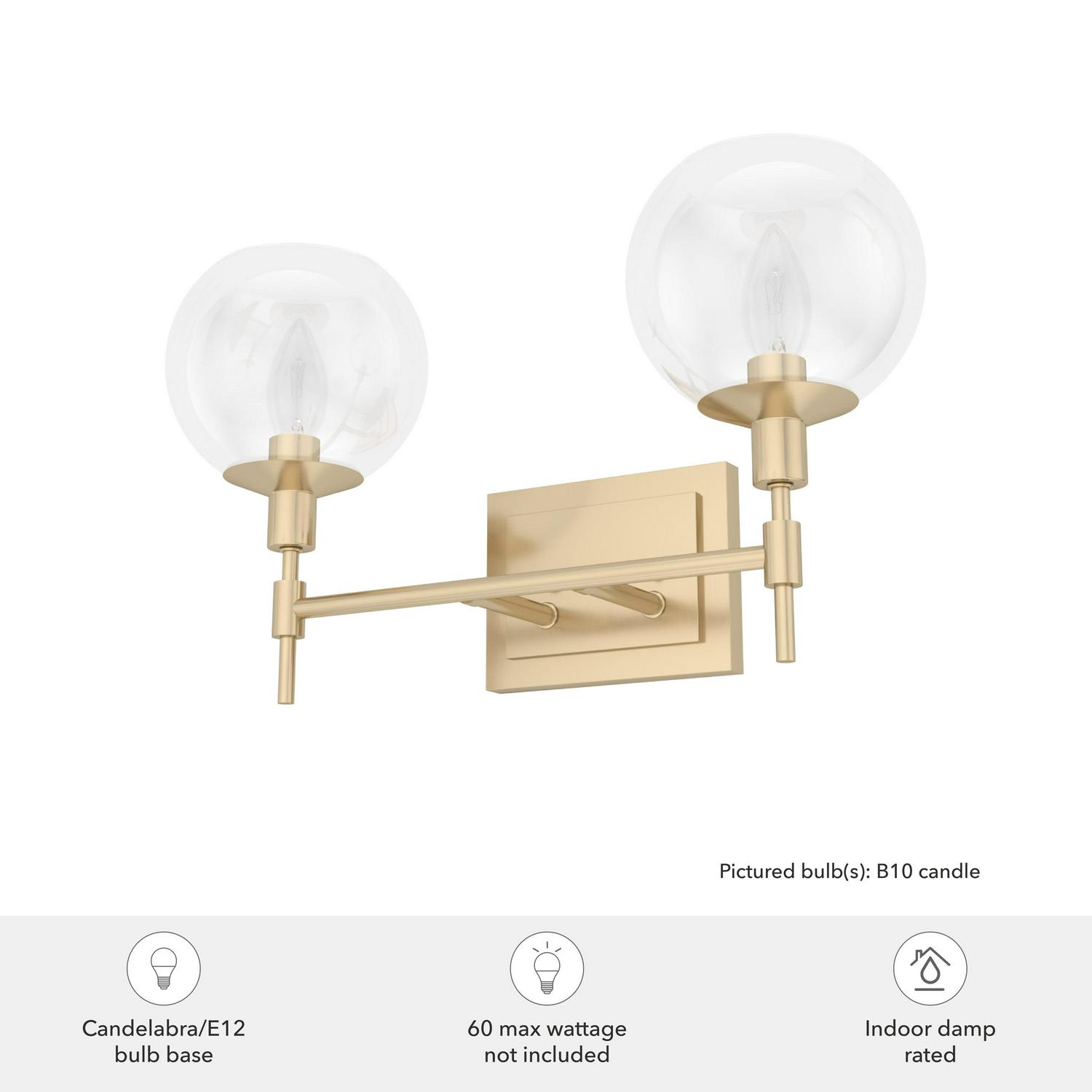 Hunter Xidane Alturas Gold with Clear Glass 2 Light Vanity Wall Light Fixture