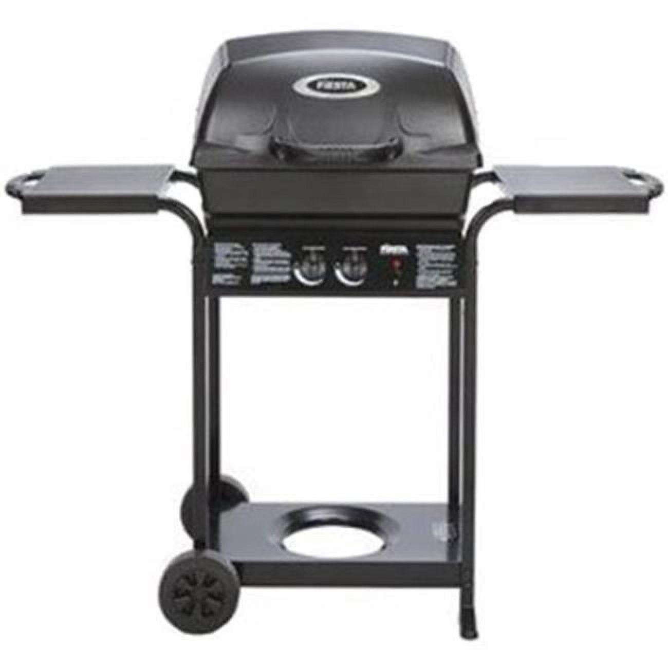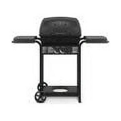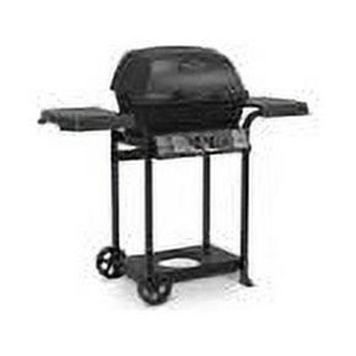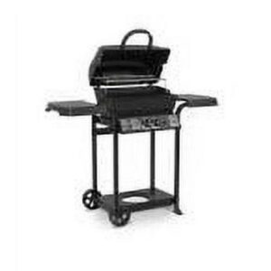 Liquid propane gas grill. Includes 390 square inches of total grilling space and a 25,000 BTU (British Thermal Unit) burner system. Features include cast aluminum cook box, porcelain coated cooking grid, stainless steel burner with 5-year warranty, aluminized steel cooking system, and 240 square inched of primary cooking area. Also includes a 150-square inch chrome-coated warming rack for convenience and a Sure-Lite ignition system to provide a quick start. Weather resistant side shelves provide additional workspace. 10-year warranty on cast aluminum oven, 5-year warranty on stainless steel burner, and 2-year warranty on remaining parts and paint. Number of Main Burners: 2 nColor: Black nPrimary BTU Rating: 25,000 nFuel Type: LP Gas nSide Burner: No nSecondary BTU Rating: nGrate Material: Steel nGrill Material: Aluminum nBurner Material: Stainless Steel nTotal Cooking Surface Area: 390 Sq. Ft. nWidth (In.): 44 nHeight (In.): 49.5 nDepth (In.): 24 nWarming Rack Upper: Yes nWeight: 46 Lb. nWarranty: 10 Yr. Cook Box/5 Yr. Burner n WARNING: This product can expose you to chemicals including lead and lead compounds known by the State of California to cause cancer and birth defects or other reproductive harm. Wash your hands after handling. For more information go to www.P65Warnings.ca.gov/product. –