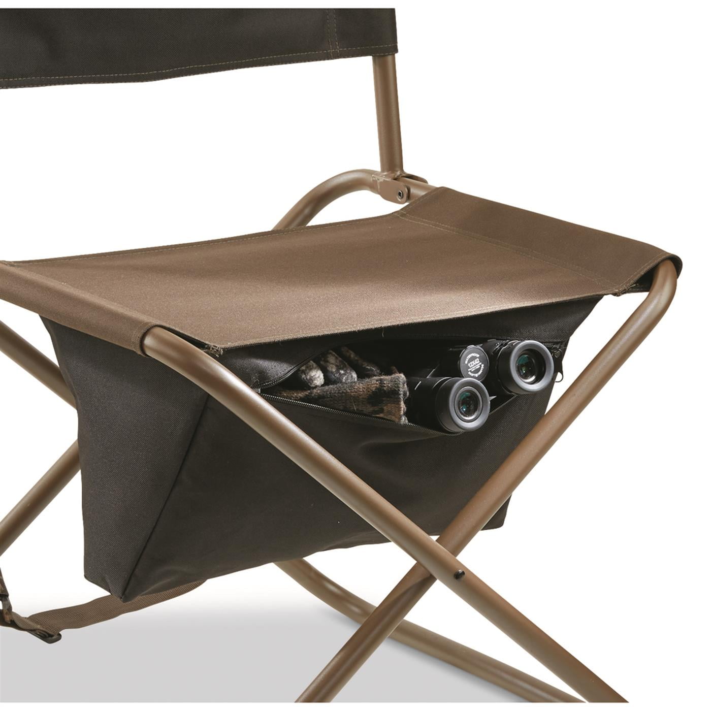 HuntRite Legends Hunting Chair If you are looking for a comfortable hunting chair that you can sit on behind a hunting blind or move around to different hunting spots then this chair for hunting is a great option. This hunting seat features a high-back design that will keep you comfortable throughout your hunt. The backrest along with its generous size offers comfort and support, so you can sit for long durations. This hunt seat comfortably supports hunters up to 250 lbs. High Back Design For Comfort And Support An ultra-lightweight hunt chair that weighs just 7 lbs. It features a 15″w. zippered storage bag for easy access to your hunting gear. A15″w. x 8″h. mesh storage pocket on the back provides extra storage for your hunting accessories. Plus, it’s a foldable hunting chair, packable and portable, folds up flat for easy transport and storage. It also has a shoulder strap for comfortable carrying. Seat Dimensions: 18″w. x 12.5″d. Seat Height: 17″ from ground to seat Frame Dimensions: 21″w. x 15″d. x 31.5″h. Frame Height: 31.5″ from ground to top of backrest Collapsed Dimensions: 21.5″w. x 27″h. Weight Capacity: 250 lbs. Weight: 7 lbs.