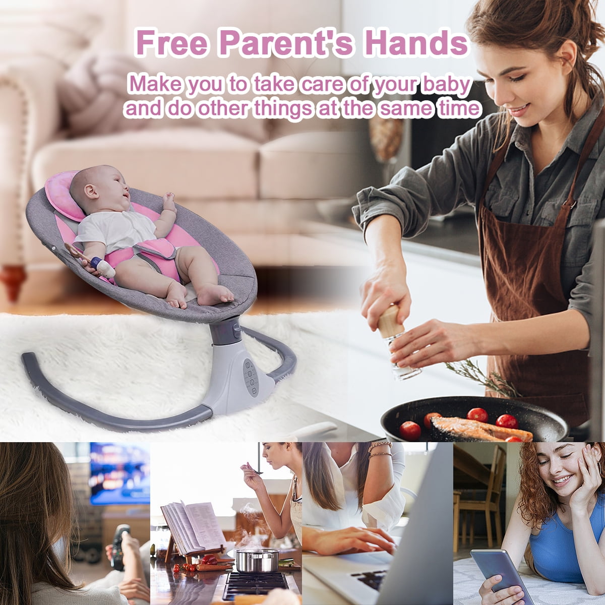 Hurber Electric Baby Swing, Infant Bouncer Chair with Remote Control, Bluetooth Music, 12 Lullabies, 4 Speeds, 4 Timing Set, Unisex, Pink