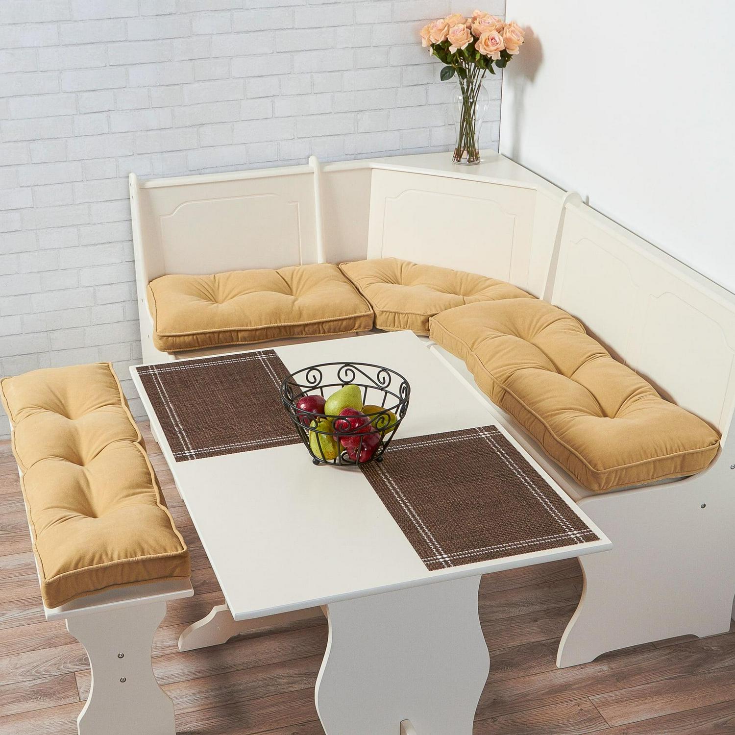 Hyatt 4-Piece Solid Buttercream Microfiber Kitchen Nook Cushion Set by Greendale Home Fashions