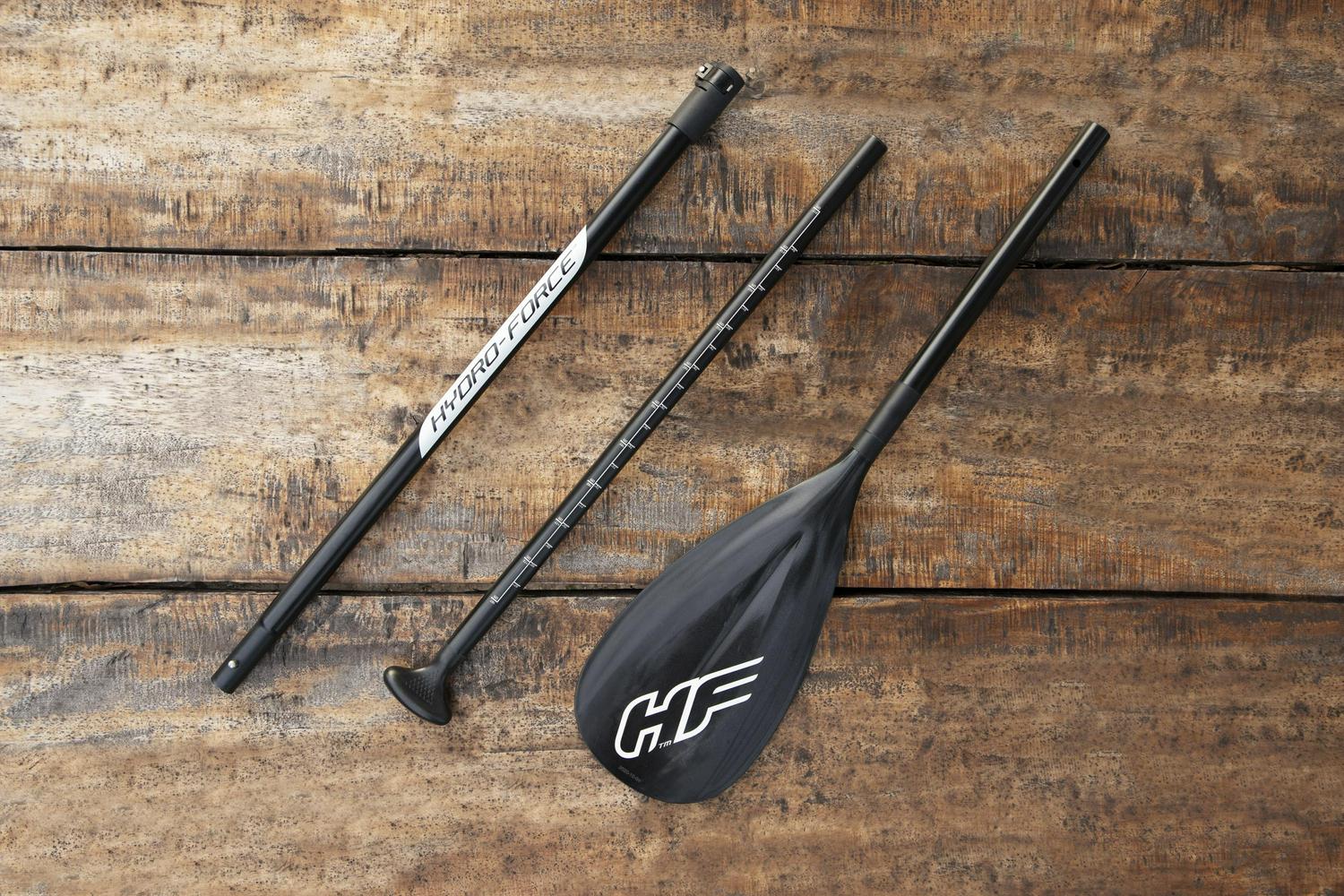 – Contents: 1 Hydro-Force paddleboard, 1 paddle, 1 hand pump, 1 backpack, 1 coiled leash, 1 fin, 1 repair kit