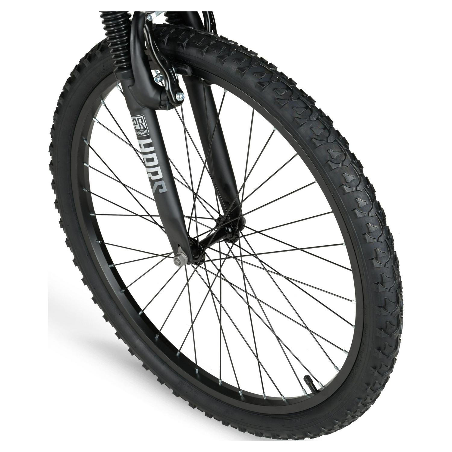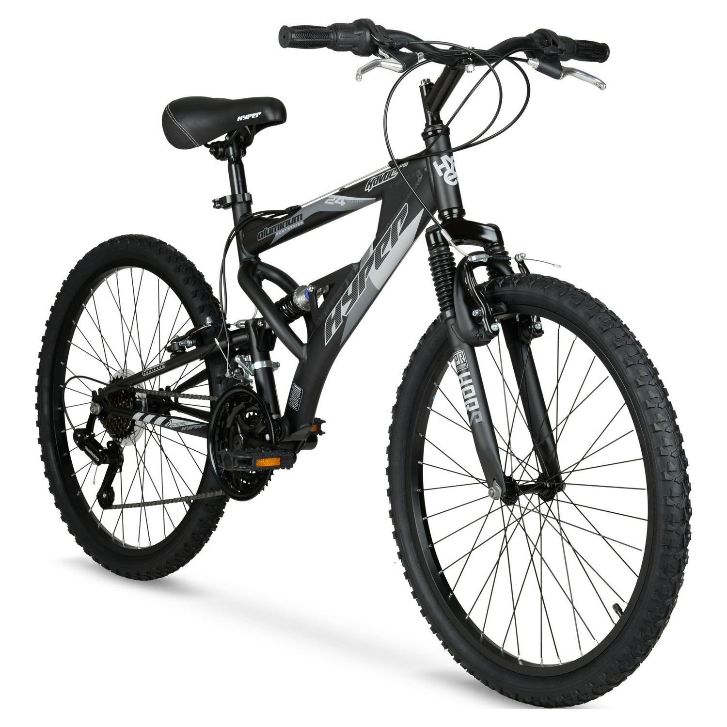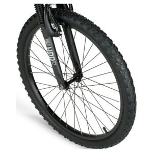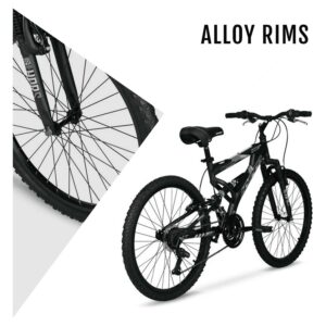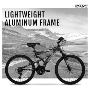 This Hyper Havoc boy’s Mountain Bike is the key to outdoor fun. It has a lightweight aluminum frame that lets users ride harder for longer, providing a reliable experience. The 24″ Hyper Havoc is designed with a front and rear suspension to offer a smooth ride on any surface. It features 21 speeds, ensuring versatility in the ride. This mountain bike has a comfortable Shimano twist shifter and a Shimano rear derailleur, allowing riders to change the gears quickly and smoothly. It has alloy rims and front and rear linear pull brakes. This bike is made with standard pedals for a comfortable and secure ride. It has grips on the handlebars for sustained comfort and control. Additionally, the bike comes equipped with a plush MTB seat, so backsides will stay comfortable on long rides. It has a sleek, black design that provides a modern look. The bike can be ridden on a variety of surfaces, allowing for flexibility in where you go with it. A bike for teens and adults